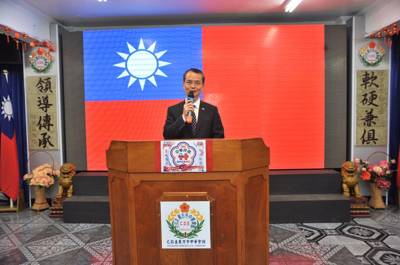 陳總領事致詞時首先向中華會館與其他僑團所有參與工作籌備及節目演出人員數月來的辛勞與付出致謝外,並推崇所有在巴東方市辛苦奮鬥的所有僑胞,在中華民國與巴拉圭建交60年邦誼所做貢獻,及見證了東方市建城60週年從無到有的成長艱辛。陳總領事並向東方市歷史最悠久的中華會館,長期為改善東方市的社會治安與僑界繁榮所做努力與貢獻致敬。
