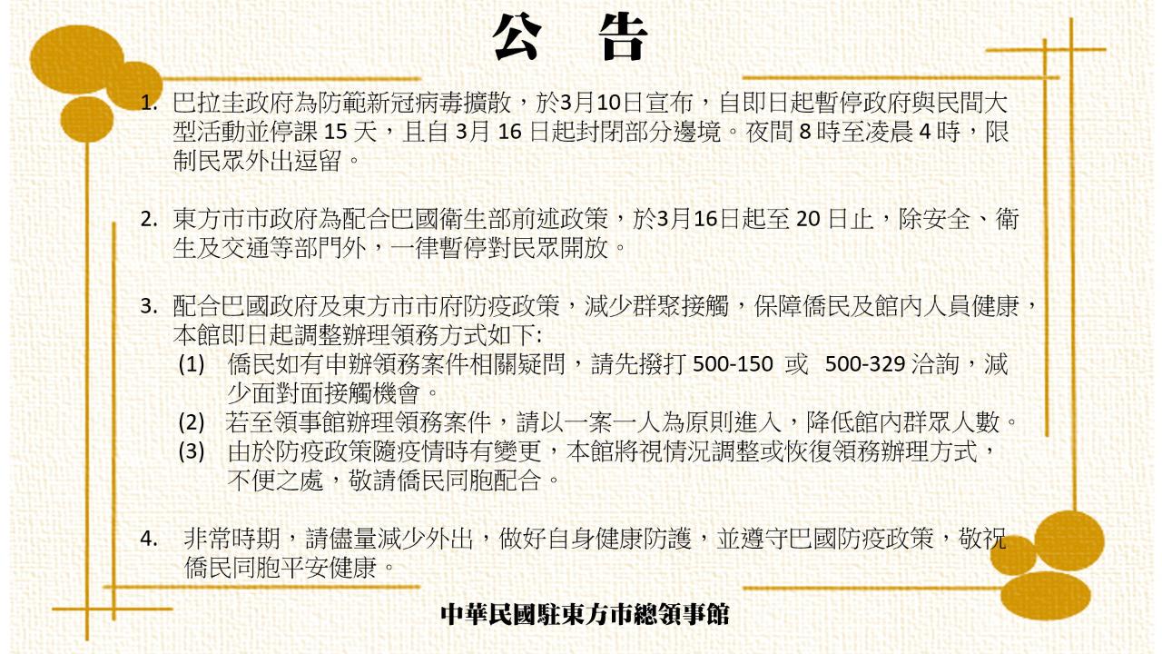 東方市總領事館疫情公告