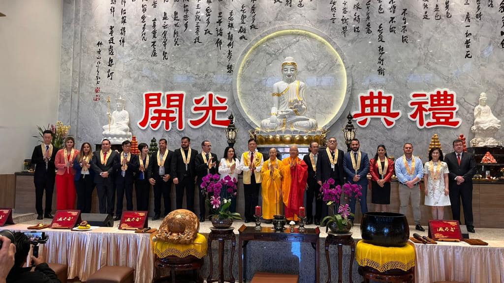 張總領事應邀出席巴拉圭佛光山開光落成典禮,並於典禮上代表中華民國政府致詞表示,巴拉圭佛光山集結東方市及鄰近區域佛光人共同興建,睽違三年疫情終於開光落成,不僅將成為佛光人的信仰中心,其所在的巴拉圭上巴納拿省及東方市也都期待藉由佛光山的落成、促進本地的繁榮及多元發展。