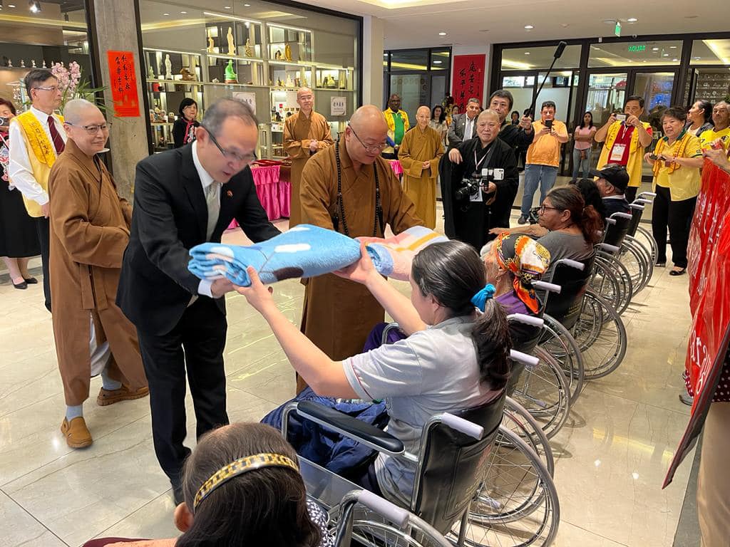 當日下午張總領事也應邀出席佛光山宗長心保和尚主持捐贈給巴拉圭弱勢民眾輪椅、毛毯及食物籃的活動,共同展現大愛。