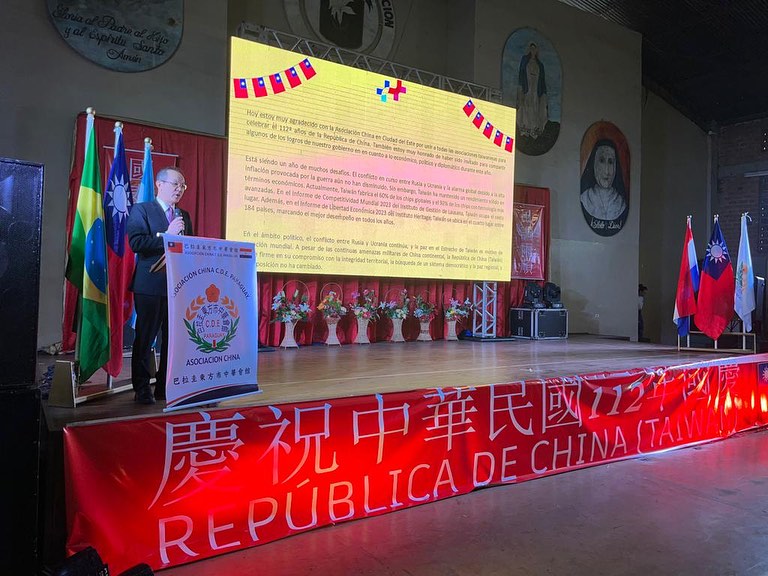 張總領事俊彬受邀出席致詞表示,感謝東方市中華會館與全僑一起慶祝中華民國112年國慶,並介紹台灣112年的經濟表現堅挺,中華民國與巴拉圭共和國的邦誼穩固,兩國之間的民間交往及文化交流也十分熱絡。