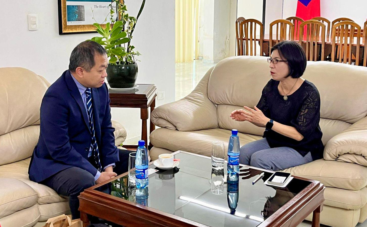 陳慧芬總領事接見來館拜會的英國樸茨茅斯大學歷史系伍漢騏助理教授,伍教授此行主要是為了進行台灣人移民巴國數十年的歷史研究。雙方談論學術、文化及社會等議題,氣氛友善愉快。