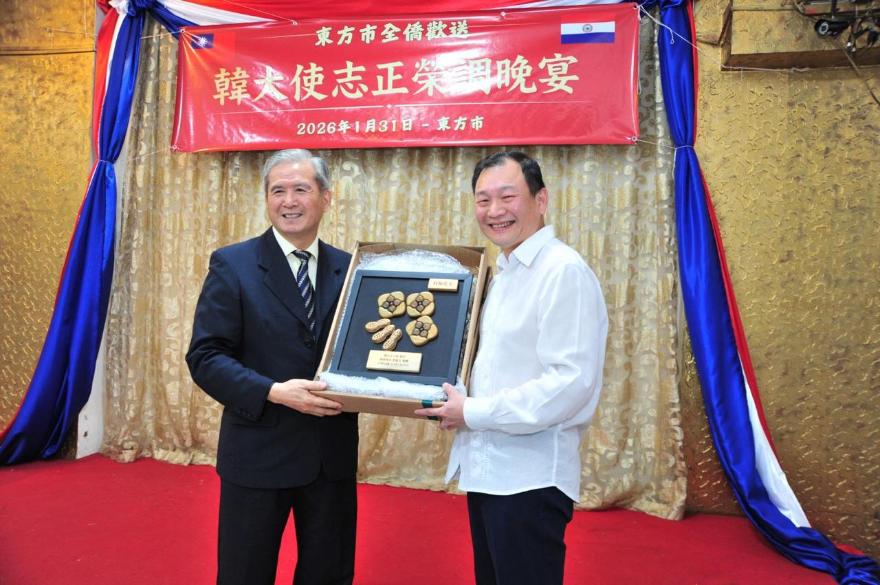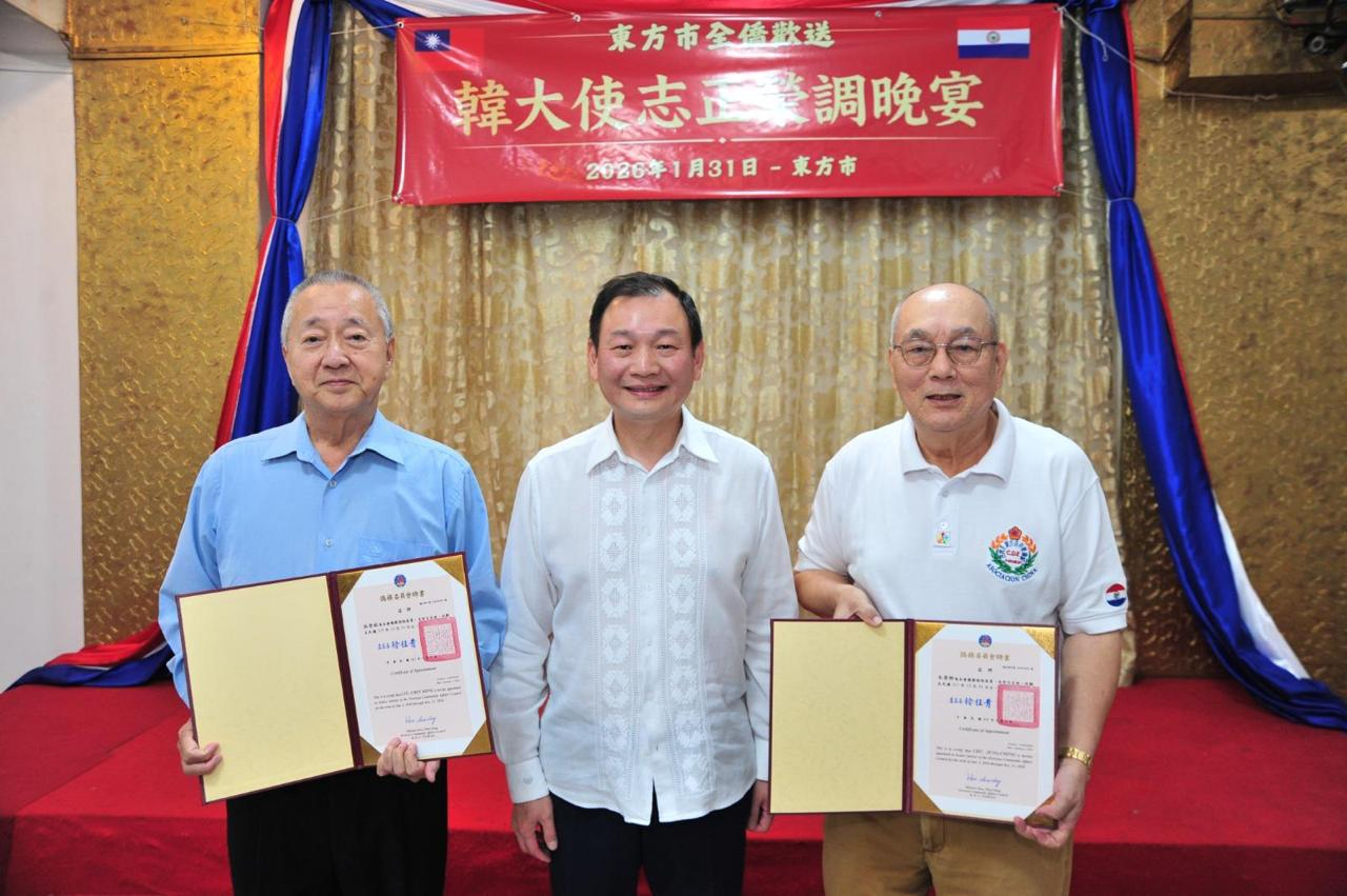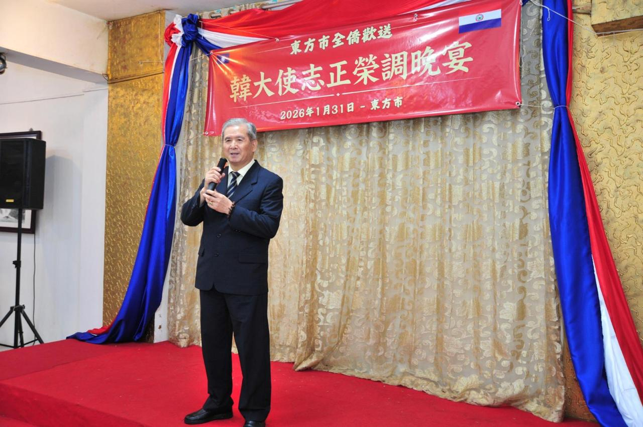 1月31日東方市全僑舉辦歡送韓志正大使榮調晚宴,陳總領事偕總領事館同仁出席,僑務榮譽職人員、各社團負責人及僑胞鄉親齊聚一堂,一同感謝韓大使5年8個月來對鞏固台巴邦交的卓越貢獻,同時恭喜韓大使榮升外交部拉丁美洲及加勒比海司司長。