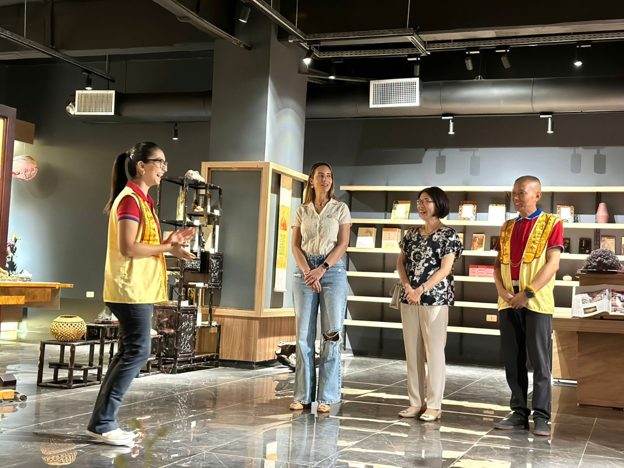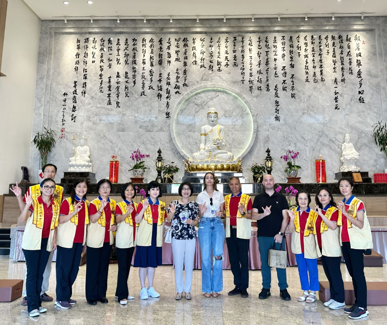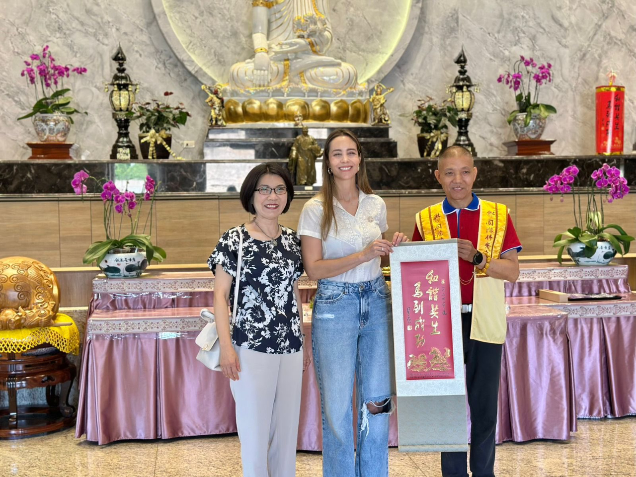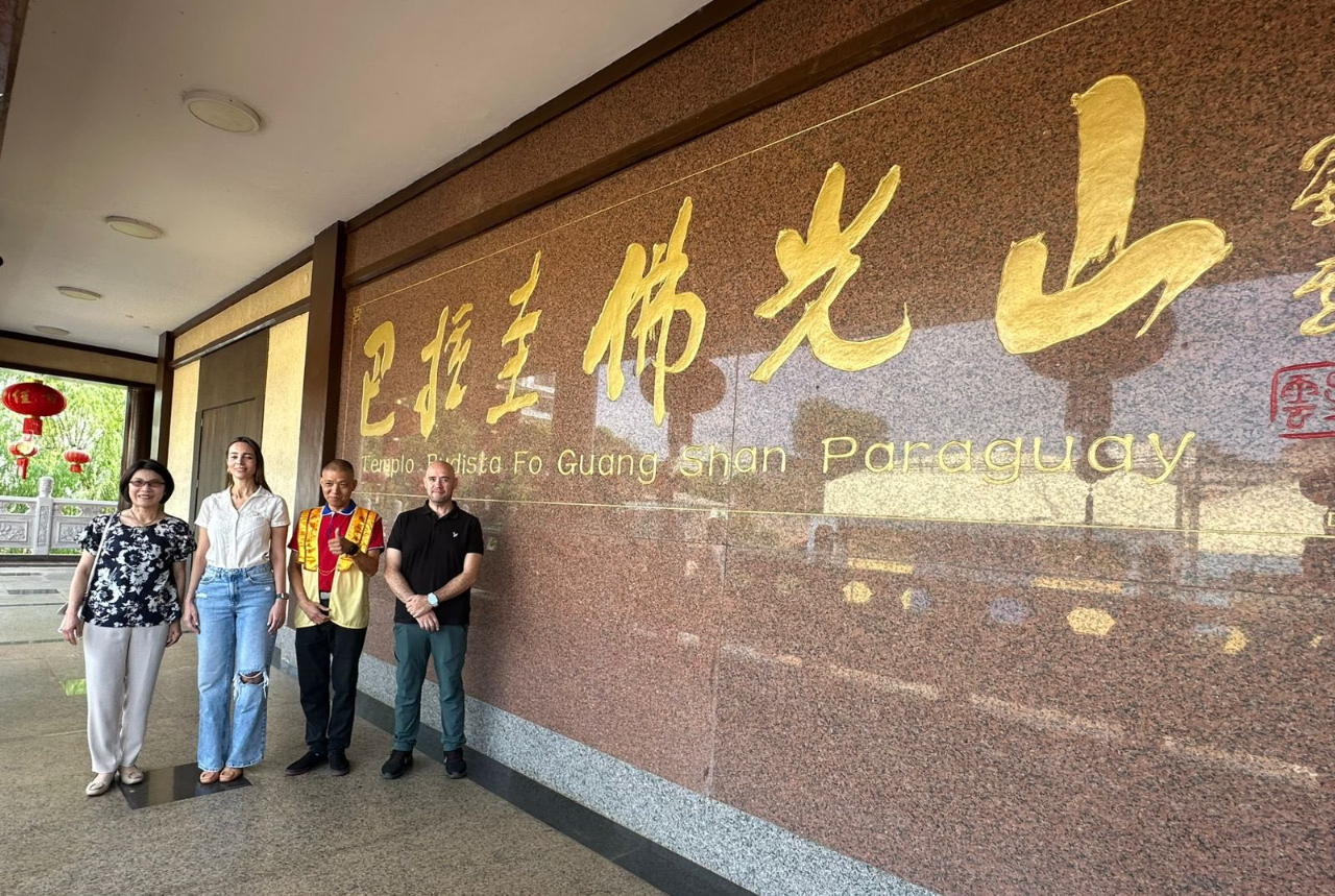 陳慧芬總領事於3月7日上午陪同巴拉圭第一夫人辦公室部長級總協調人Antonella Albertini參訪巴拉圭佛光山;A部長對於佛光山此一重要的精神和文化場域有了更深入的瞭解,特別是其傳統的建築風格與寧靜祥和的氛圍,令人心生反思與冥想之感。