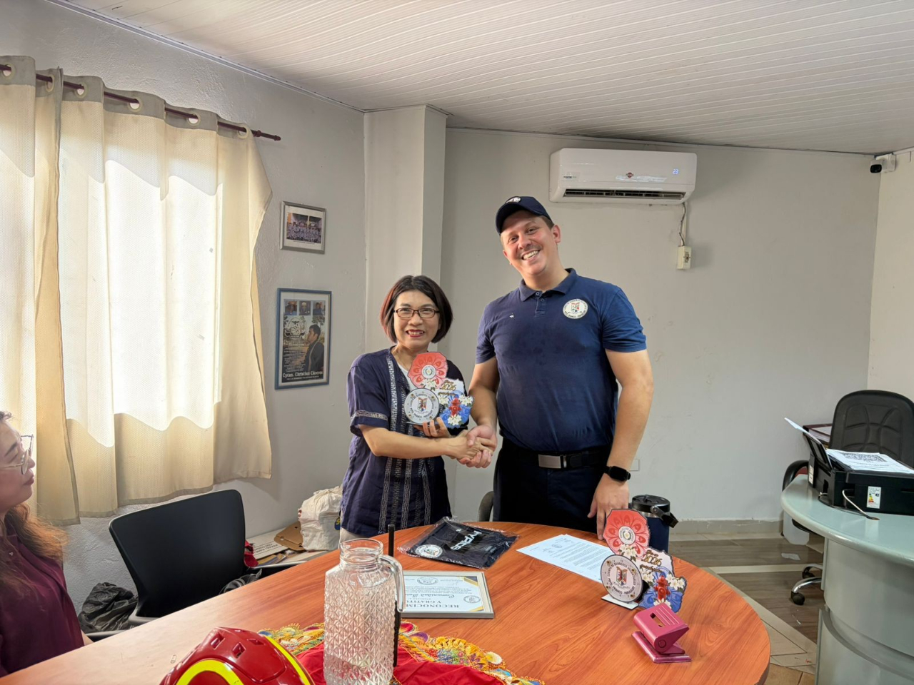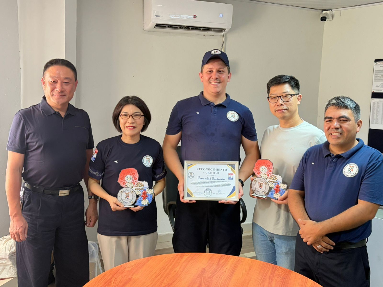 活動現場由 José Velázquez 大隊長、Roberto Zarate 副隊長等人接待,包括杜德光僑務諮詢委員、廖哲毅僑務顧問、簡仲庭僑務促進委員等僑領,共同見證這項富有意義的善舉。透過此次捐贈,不僅深化僑界與當地社區之間的情誼,也展現臺灣人在海外積極參與公益、與社會共好的精神。
