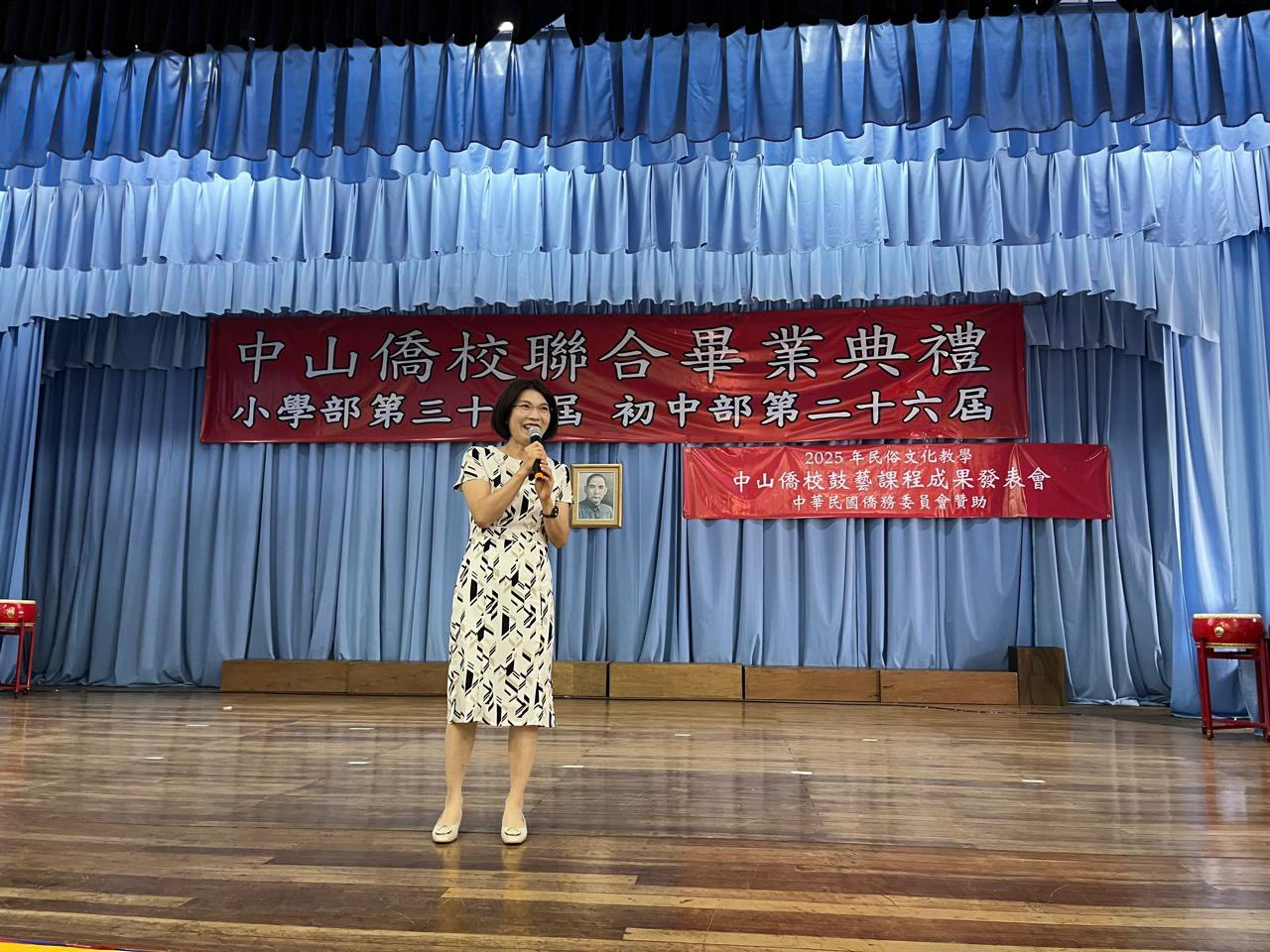 Durante la ceremonia, La Cónsul General se convirtió en la maestra Irma y, a través de “tres agradecimientos” y “tres palabras”, animó a los graduados, esperando que estos mensajes les sirvan para toda la vida y que puedan convertirse en personas valiosas que contribuyan a la sociedad y al país.