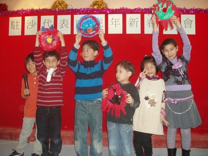 利雅德中文學校幼幼班師生進行「兩隻老虎」歌唱表演