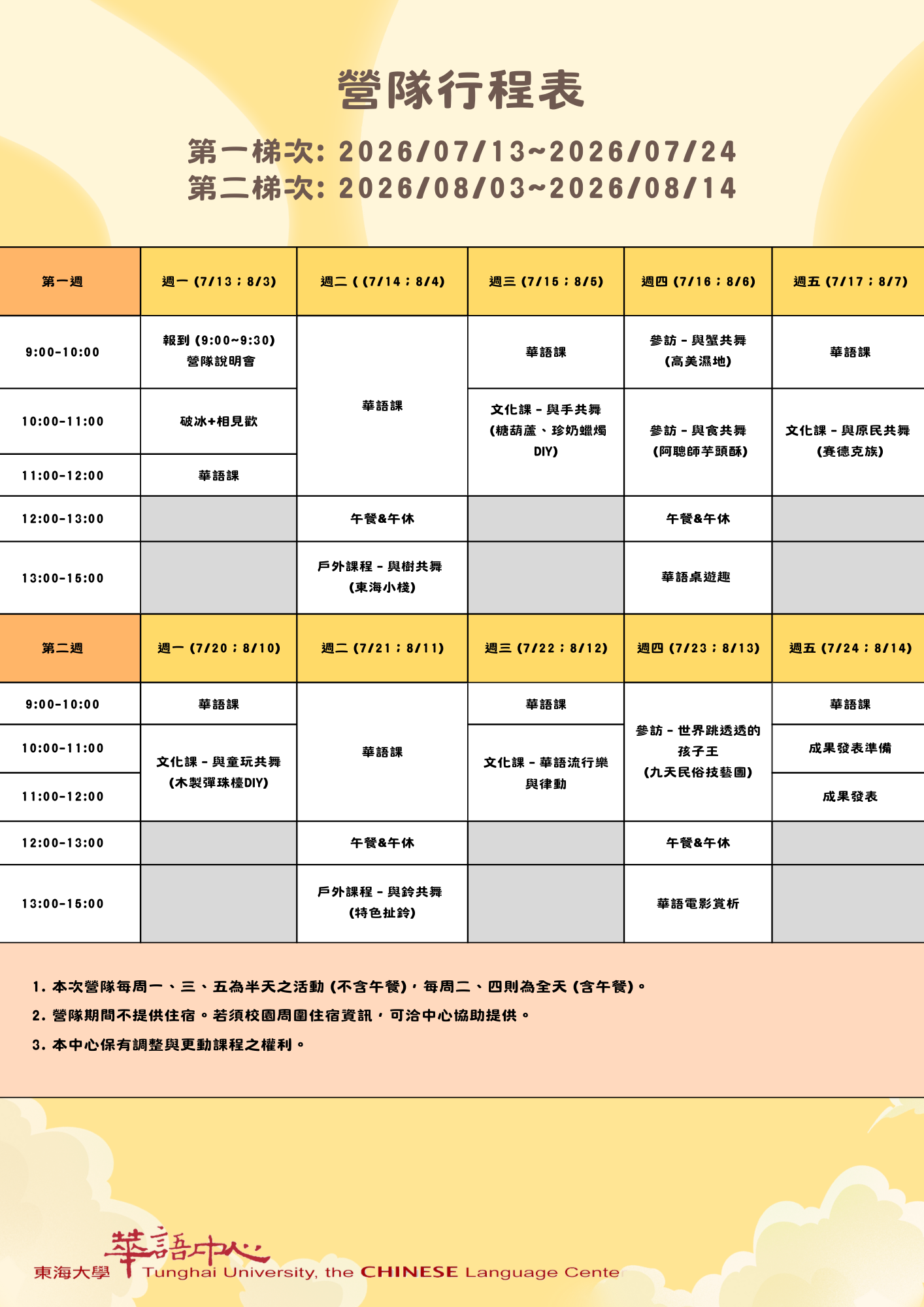 東海大學華語教學中心預計於2026年7月14日至7月25日、8月3日至8月14日辦理為期兩週、兩梯次的「兒童華語夏令營-語出台中 • 舞動精彩」,現正熱烈招生中!