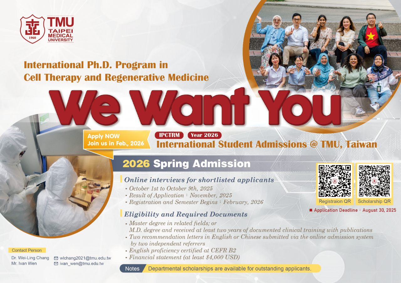 IPCTRM of Taipei Medical University (TMU) is now open for application until August 30.