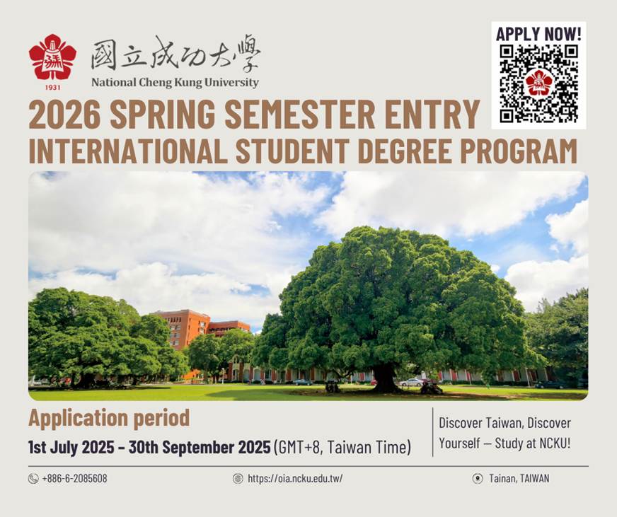 The NCKU 2026 Spring Semester Admission for International Students is Now Open for Application
