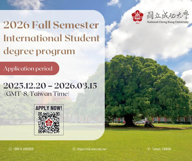 the NCKU 2026 Fall Semester Admission for International Students is Now Open for Application