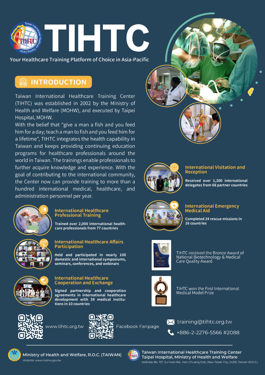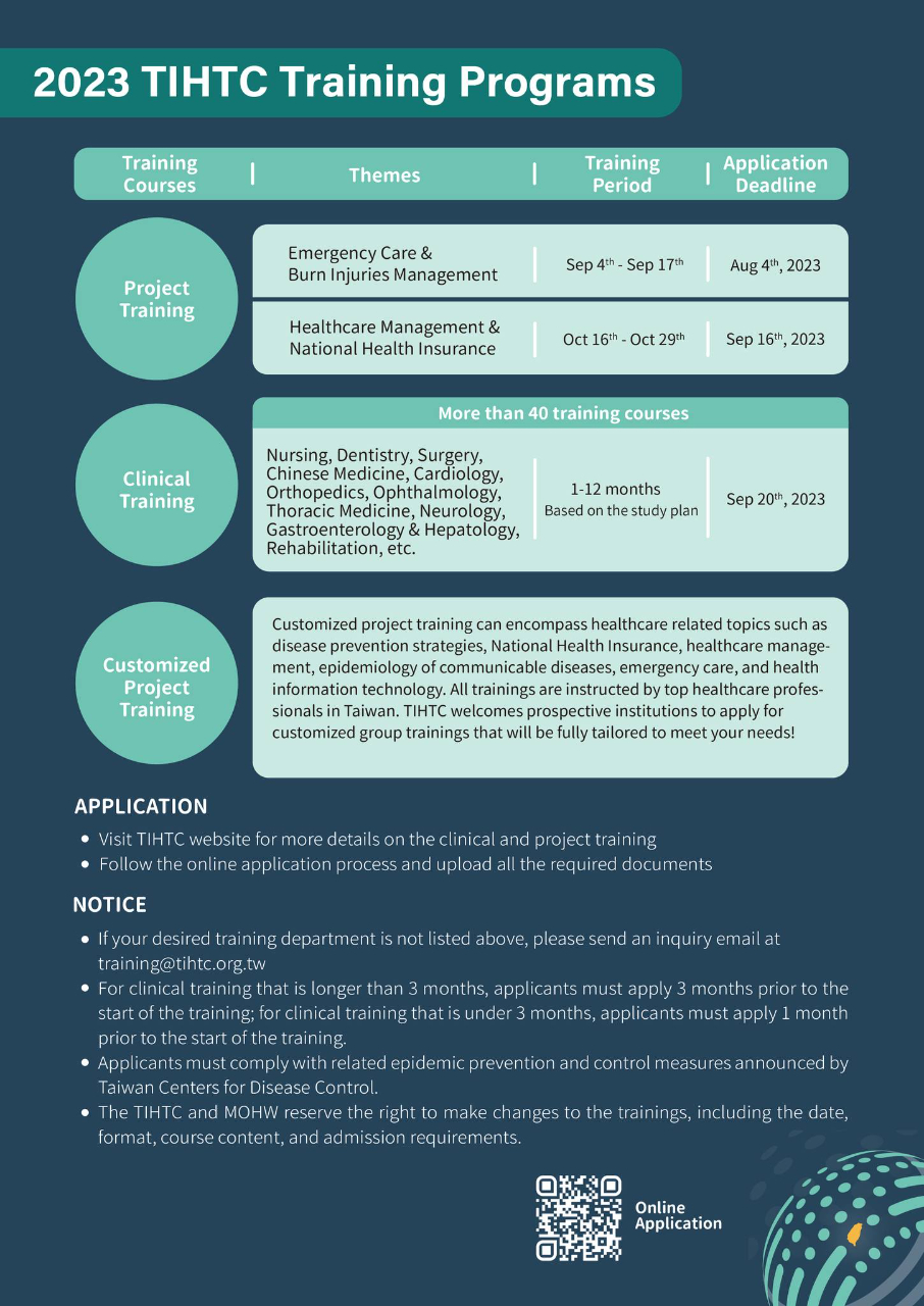 2023年「臺灣國際醫療衛生人員訓練中心」(TIHTC)培訓課程開始接受報名!