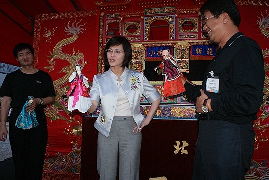Representative Vanessa Y.P. Shih meets members from the Taipei Shiao Shi Yuan puppet show troupe and demonstrates her skill in puppet show