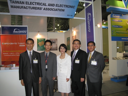 After the opening ceremony of “ CommunicAsia 2009” .Representative Vanessa Shih poses for pictures with members from Taiwan Electrical and Electronic Manufacturers’ Association on June 16, 2009