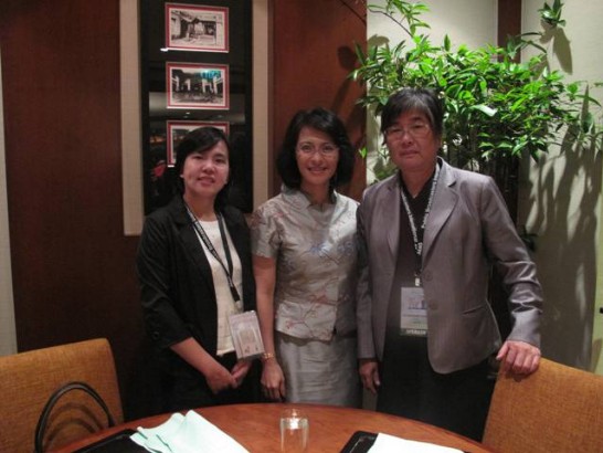 Representative Shih poses with Dr. Sunchine Kuang, the President & CEO of Taiwan Public Television Service Foundation (1st right) and TBS International Department Deputy Director, Jessie Shih, 28 Oct 2011.