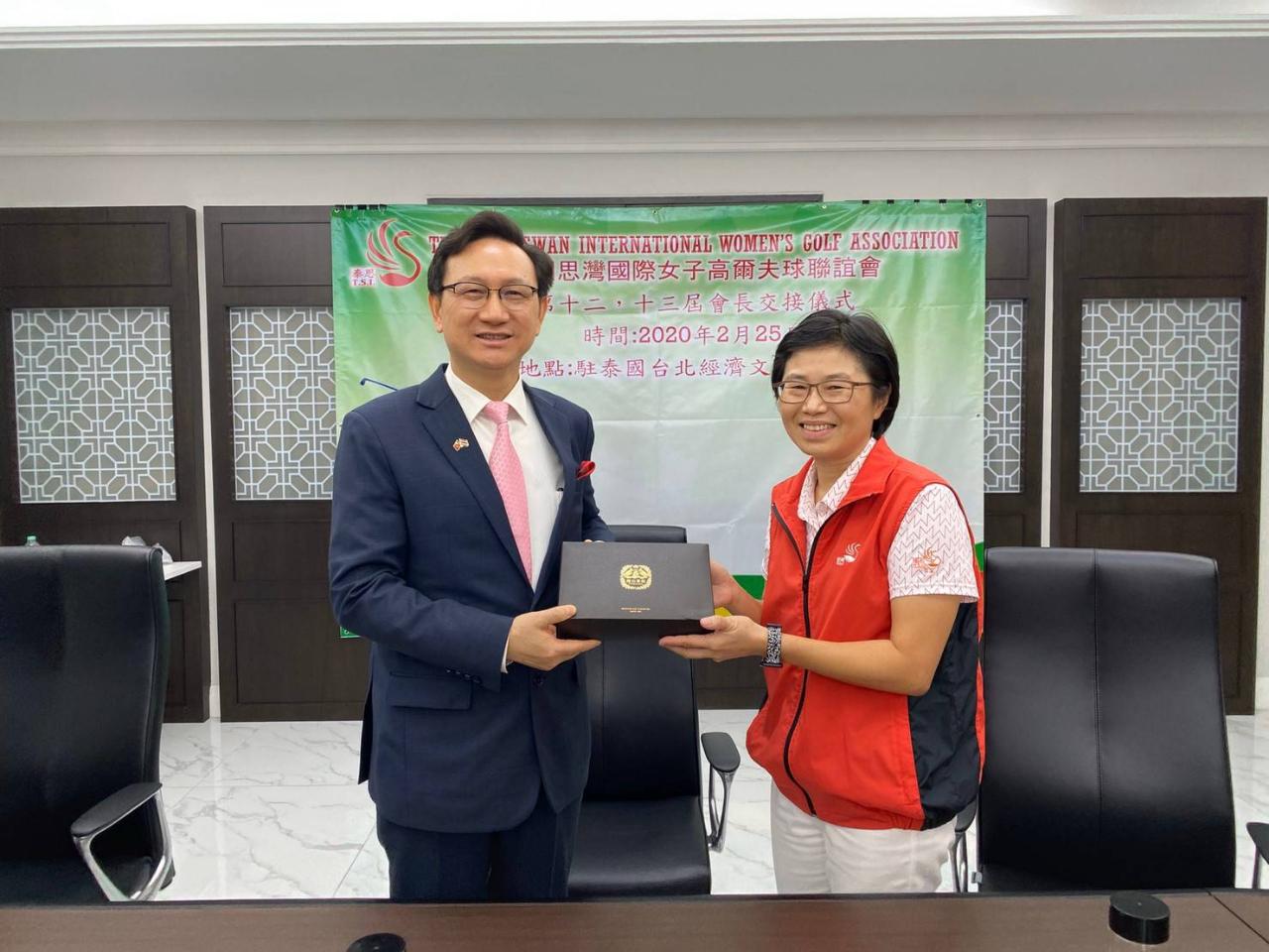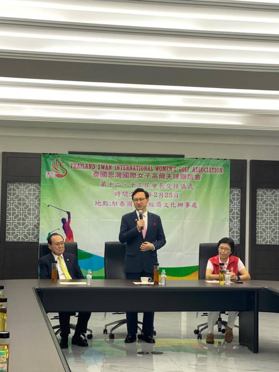 泰國思灣國際女子高爾夫球聯誼會於2月25日在駐泰代表處舉行簡單隆重的會長交接儀式,在童振源代表及該聯誼會總顧問余聲清主席監交下,由第十二屆何慧如會長交接予第13屆陳玉恒會長,歷任會長包括高凰凰、林信慧、郭修敏、鄭紹敏、陳玉恒、林淑珍、張芳桂、宋美如等名譽會長亦出席共同見證。