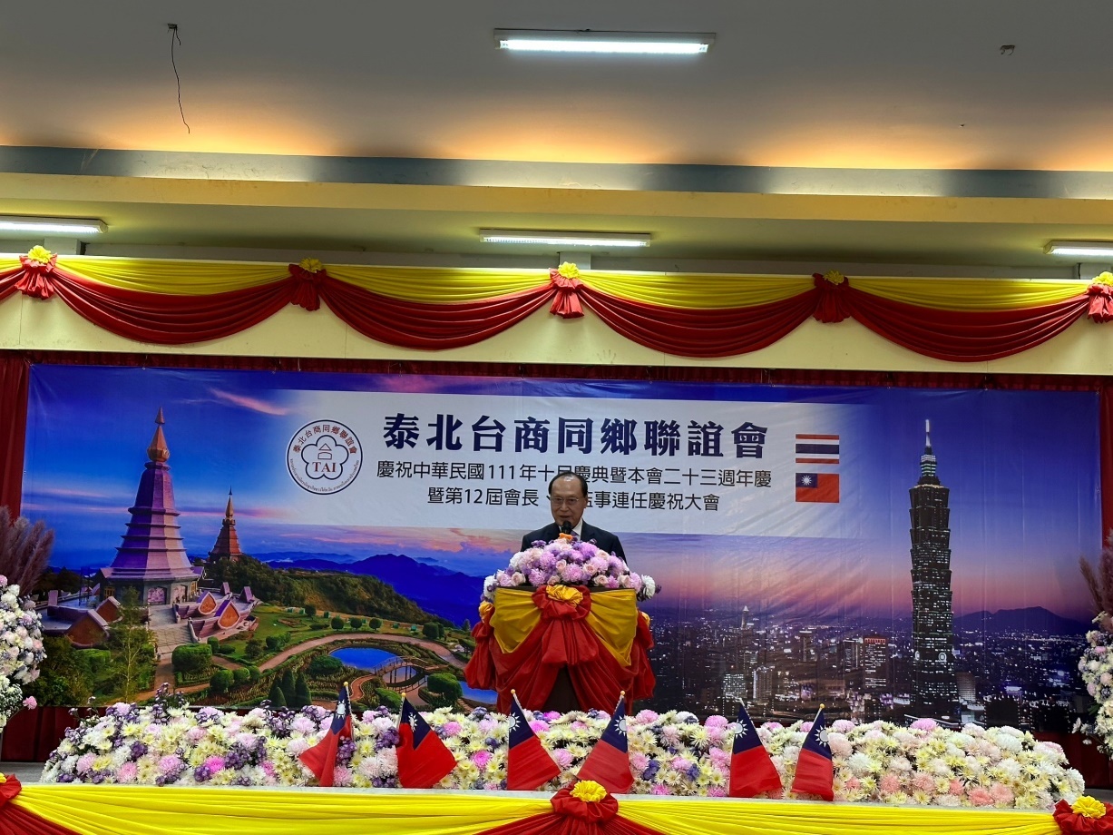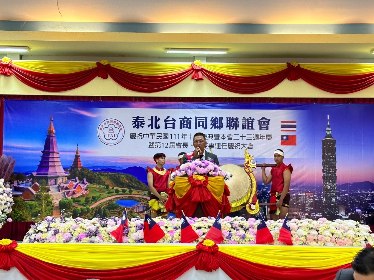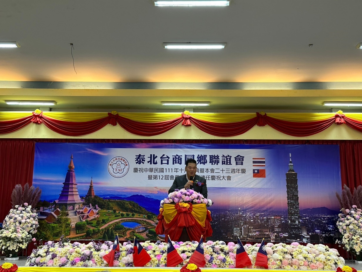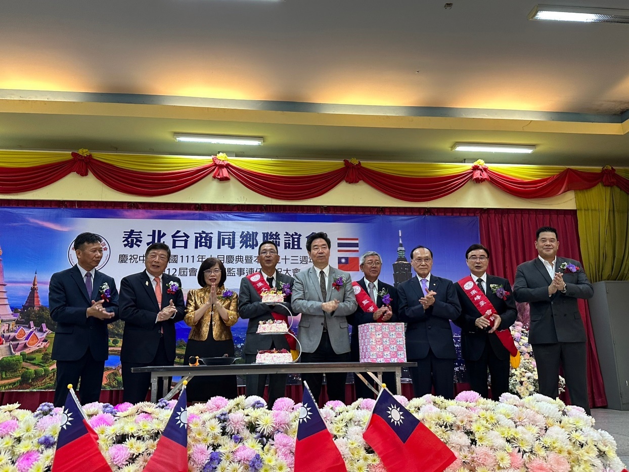 泰國各地僑胞團體為賀光輝十月,陸續舉辦國慶活動表達愛國心。泰北台商同鄉聯誼會10月29日於清邁客屬同鄉會會館舉行慶祝中華民國111年國慶、該會23週年慶暨第12屆會長連任慶祝大會,活動由張文杰會長主持,約150位僑胞及台商朋友踴躍參與。駐泰國代表處莊碩漢大使偕僑務組許世榕組長及陳超峰副組長前往慶賀。