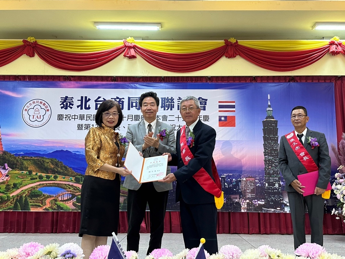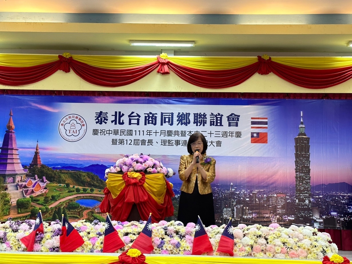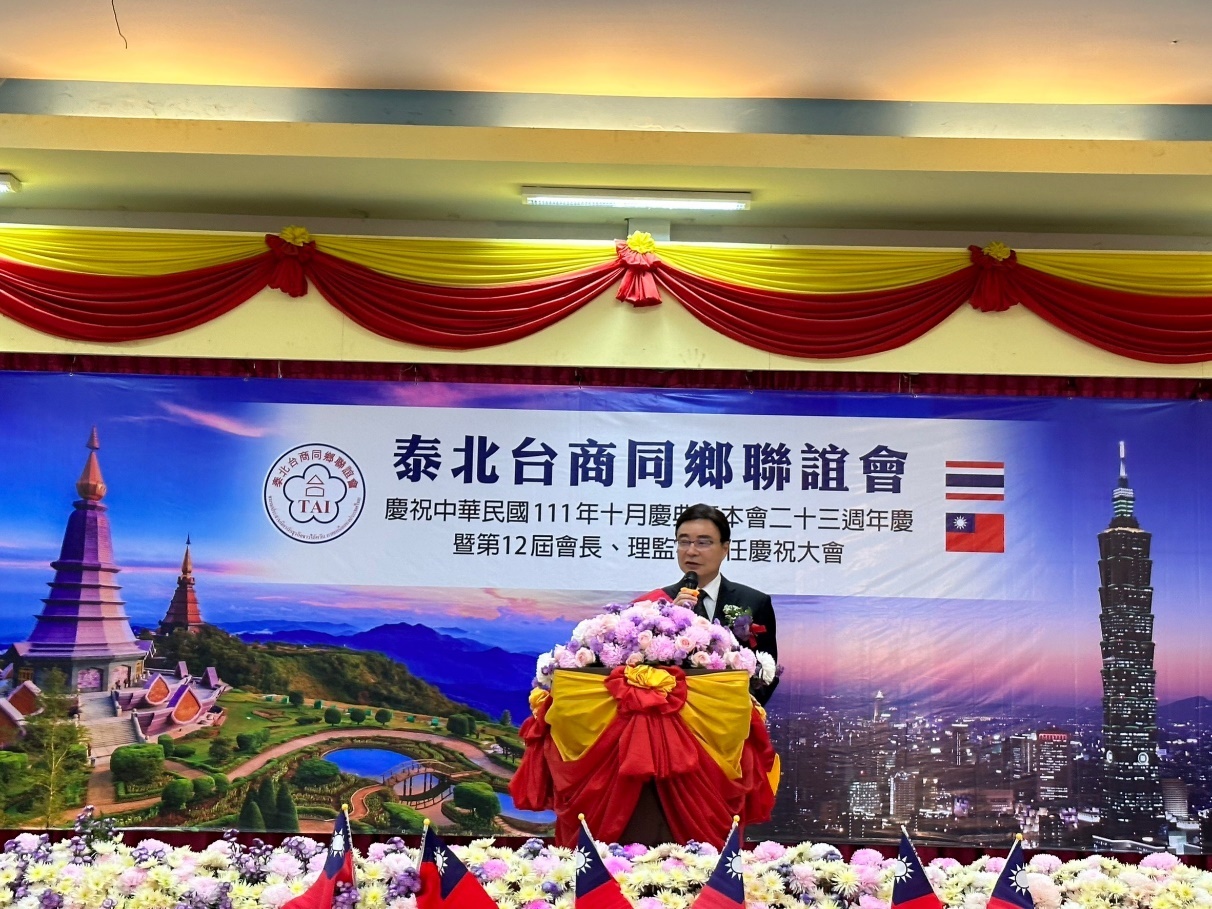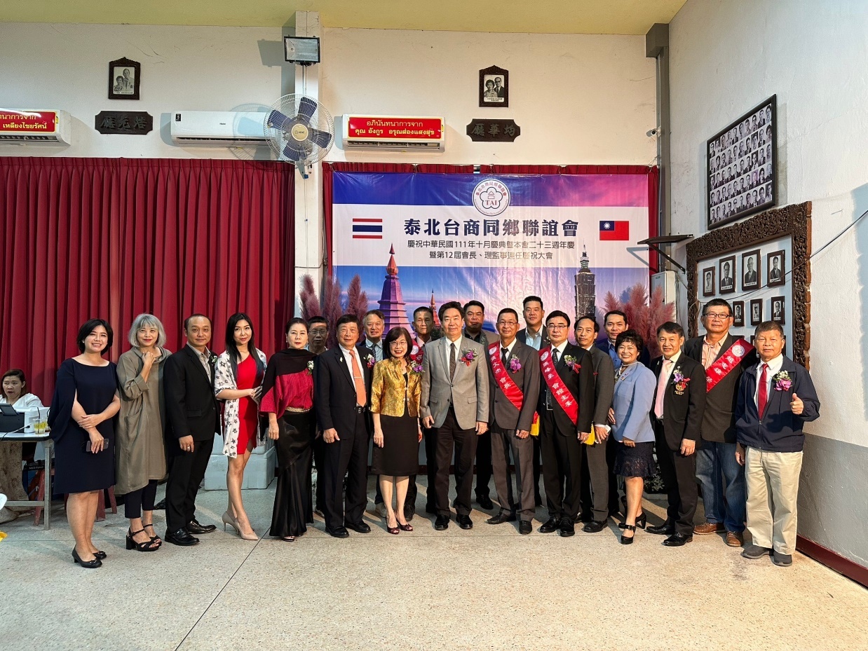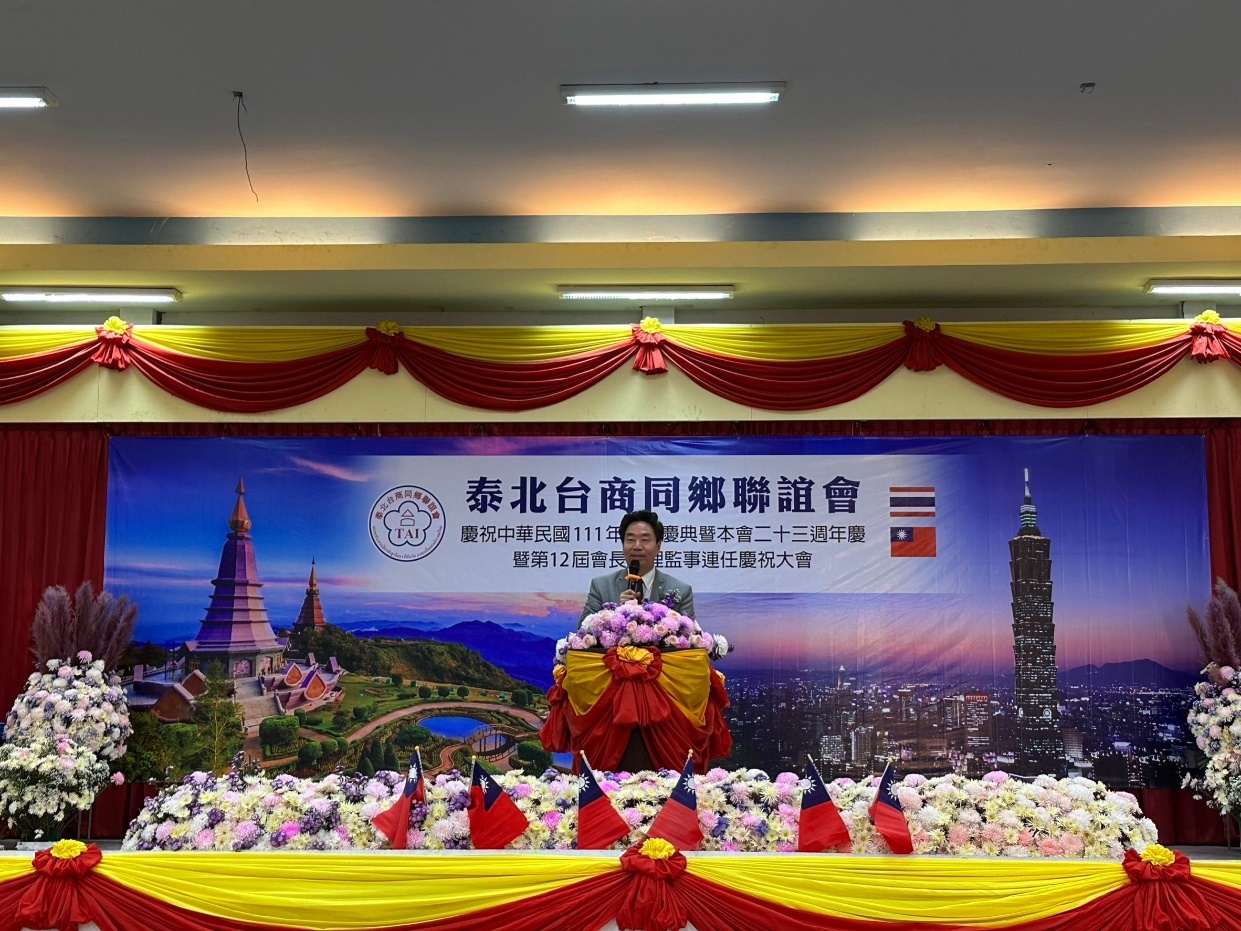 泰國各地僑胞團體為賀光輝十月,陸續舉辦國慶活動表達愛國心。泰北台商同鄉聯誼會10月29日於清邁客屬同鄉會會館舉行慶祝中華民國111年國慶、該會23週年慶暨第12屆會長連任慶祝大會,活動由張文杰會長主持,約150位僑胞及台商朋友踴躍參與。駐泰國代表處莊碩漢大使偕僑務組許世榕組長及陳超峰副組長前往慶賀。