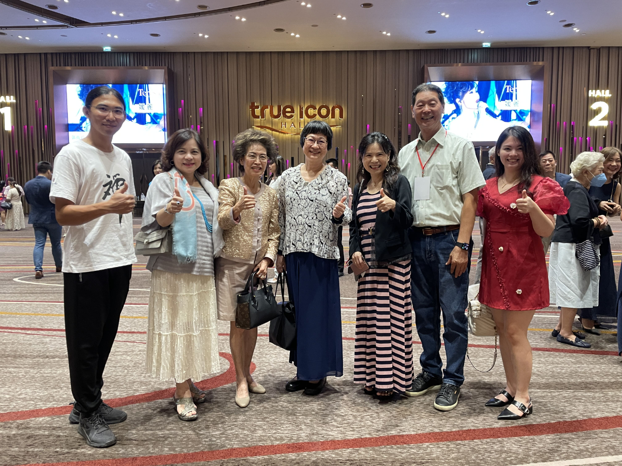 圖說一:駐泰國代表處薛秀媚公使(中)、文化組田又安組長(右三)、鄧麗君文教基金會鄧長富董事長(右二)、僑務諮詢委員何素珍(左三)、泰國臺灣會館副主席張玲琴(左二)等共襄盛舉出席演唱會。