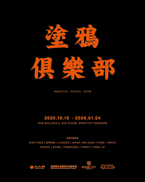 駐泰國代表處文化組與曼谷河城藝術中心(River City Bangkok)合作,首次在泰國呈現「塗鴉俱樂部(Graffiti Social Club)」國際塗鴉藝術家展覽,展期自本(2025)年10月10日至2026年1月4日。