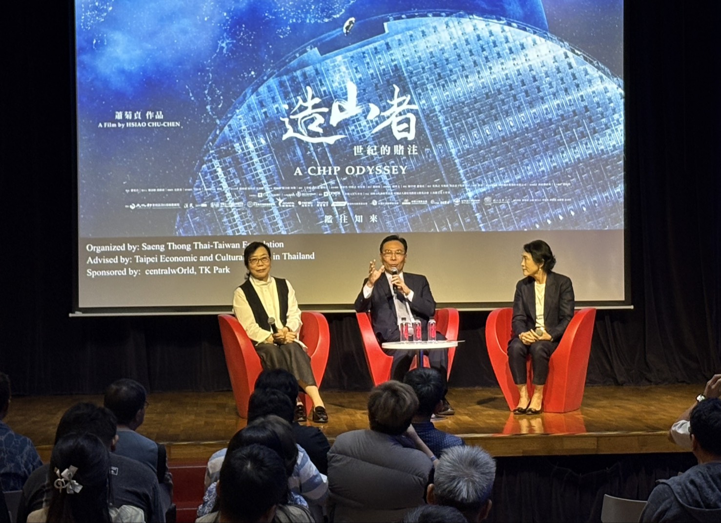 此次活動在駐泰國代表處協調下,由泰國台灣聖通(金色陽光)慈善基金會郭修敏女士、Central Group 林珠玲女士、River City Bangkok鄭紹敏女士、Skyline Film 盧育駿先生、Wide Faith Group葉季康先生、Super Chicken、Food & Drinks莊智堯先生共同舉辦,並獲泰國各地區台商協會支持協辦。映後座談由《造山者》導演蕭菊貞、聯合出品方沈邑穎親臨現場,與觀眾面對面分享拍攝過程中的心路歷程及幕後花絮。