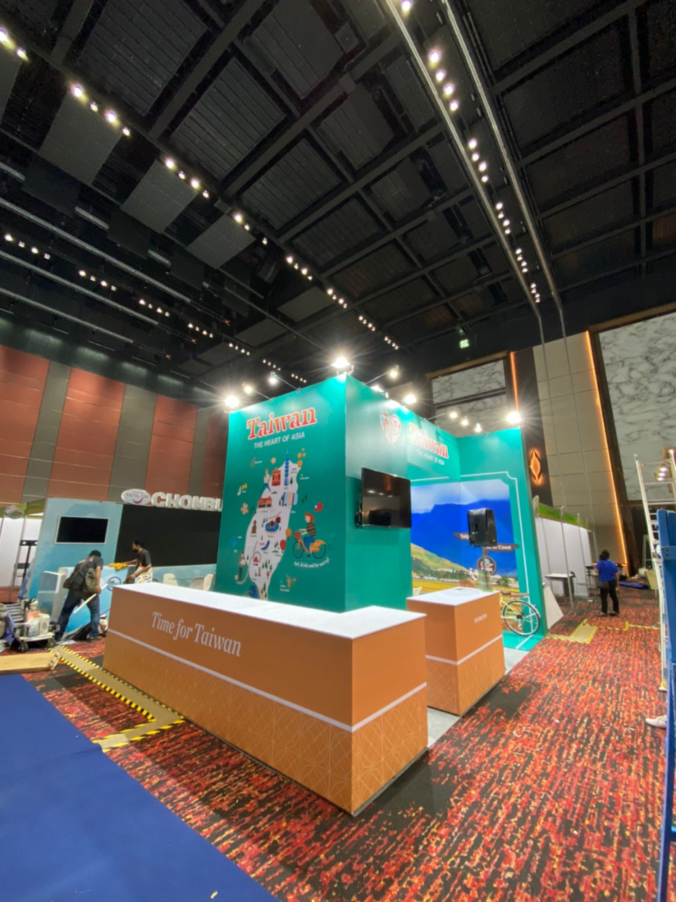 สำนักงานการท่องเที่ยวไต้หวันฟันฝ่าข้อจำกัดภาวะโรคระบาด ด้วยการทำการตลาดออนไลน์ร่วมกับ Blogger เผยแพร่ความหลากหลายทางวัฒนธรรมของไต้หวันให้กับคนไทยอย่างต่อเนื่องผ่านสัมมนาการท่องเที่ยวและกิจกรรมทางออนไลน์มากมาย เพื่อสร้างแรงกระตุ้นให้นักท่องเที่ยวชาวไทยกลับมาเที่ยวไต้หวันอีกครั้งหลักจากสถานการณ์การแพร่ระบาดคลี่คลายลง ในนิทรรศการครั้งนี้ บูธงานของไต้หวันถูกออกแบบโดยใช้โทนสีเขียว ซึ่งเป็นสัญลักษณ์ของความหวัง ความอุดมสมบูรณ์ และความโชคดีในไทย นำพาพลังชีวิตอันแข็งแกร่งของไต้หวันให้แก่ผู้เยี่ยมชมทุกท่าน ภายในบูธนิทรรศการอันประณีตสวยงาม ผู้เยี่ยมชมงานสามารถใช้เวลาเพียงหนึ่งวินาทีเพื่อเดินทางจากไทเป101 ไปถึง Brown Avenue ในไถตง อีกทั้งยังสามารถเพลิดเพลินไปกับทัศนียภาพที่มีลักษณะสวยงามโดดเด่นของโขดหินสีเขียวหรือ เลาเหมย (North Coast Laomei Green Reef) ที่อยู่ทางชายฝั่งตอนเหนือ ทั้งหมดนี้เป็นตัวเลือกรูปแบบการพักผ่อนกลางแจ้งเชิงสุขภาพมากมายให้กับนักท่องเที่ยว หลังจากโรคระบาดโควิด19 นอกจากนี้ ภายในงานยังมีโซนจักรยานสำหรับถ่ายรูปให้ผู้มาเยี่ยมชมงานได้ถ่ายรูปเช็คอิน (@itstimefortaiwanth) เพื่อส่งมอบความอบอุ่นและความมีชีวิตชีวาให้กับนักท่องเที่ยวชาวไทยผ่านSocial Media