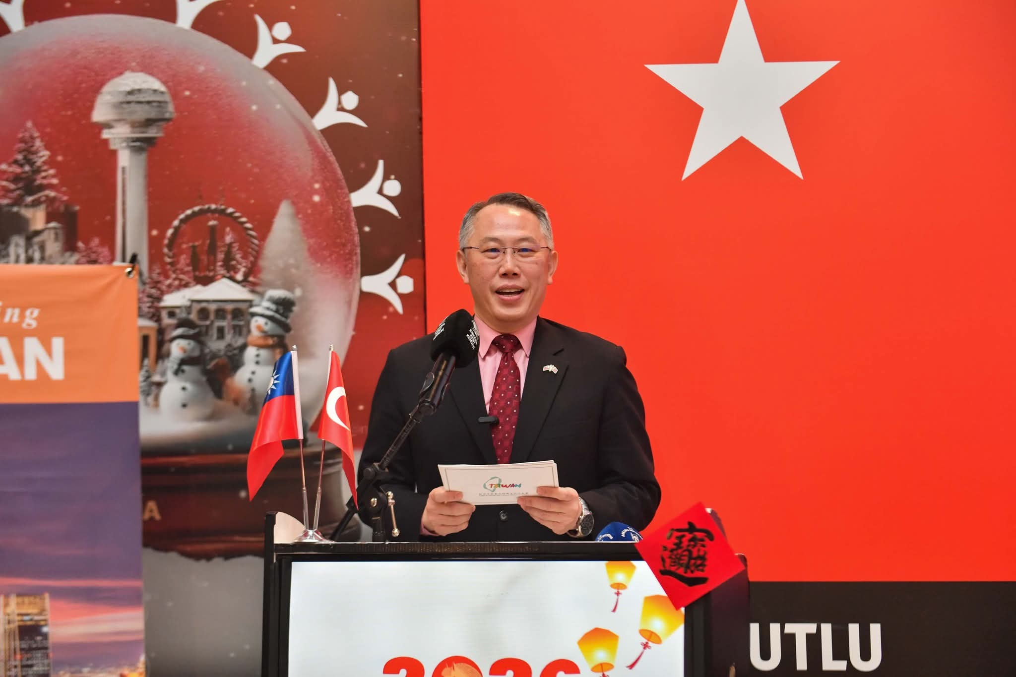 本處黃志揚代表致詞時表示,農曆新年是台灣最重要的傳統節日之一,而「初二回娘家」象徵家庭團圓與對長輩的敬重,與土耳其於傳統節日期間返鄉團聚的文化精神相互呼應。 黃代表強調,文化交流是促進雙邊理解的重要橋梁,透過美食、藝術與音樂的分享,有助於增進土耳其各界對台灣多元文化的認識與理解,進一步促進雙方人民交流與友誼。