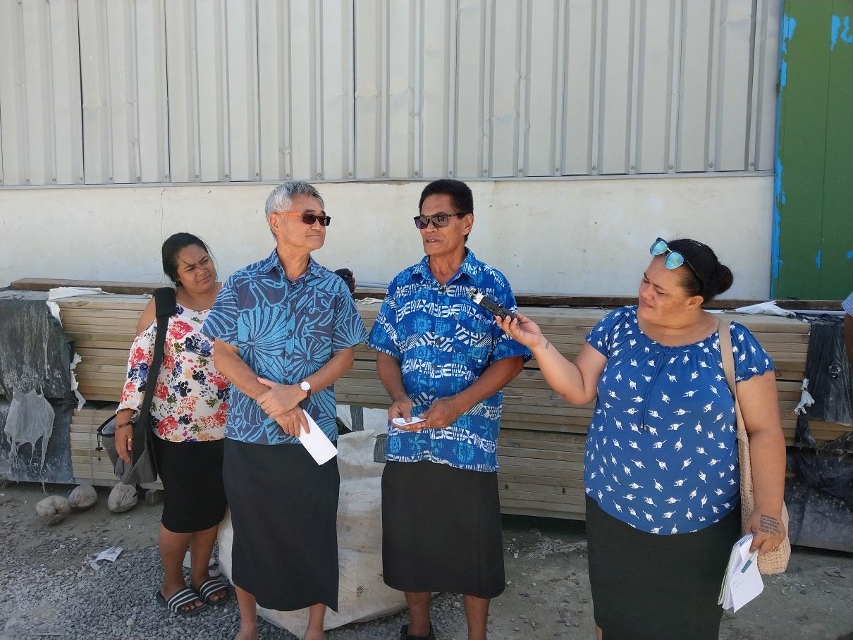 本館蘇大使仁崇與吐國地方政府部長羅歐依(Katepu Laoi)於「幫幫忙基金會」愛心物資貨櫃捐贈典禮後接受媒體訪問。(吐京富那富提港口,20191029攝)