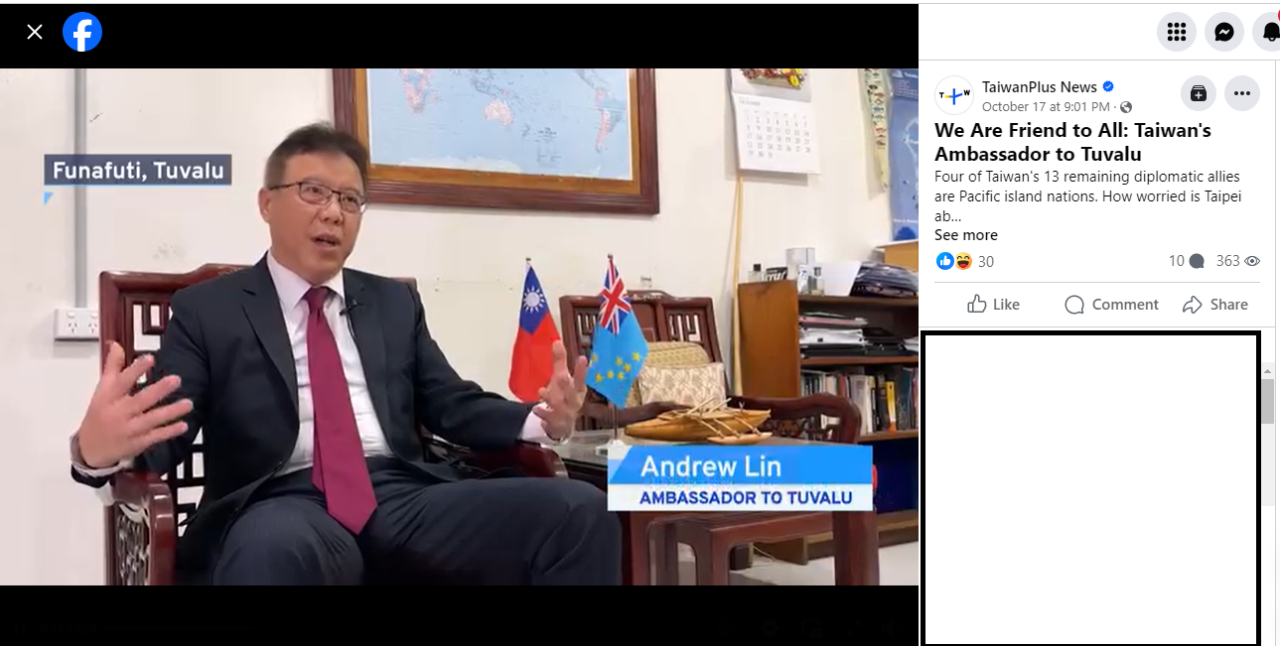 112年10月1日駐吐瓦魯國大使館林大使東亨接受Taiwan Plus記者Louise Watt專訪