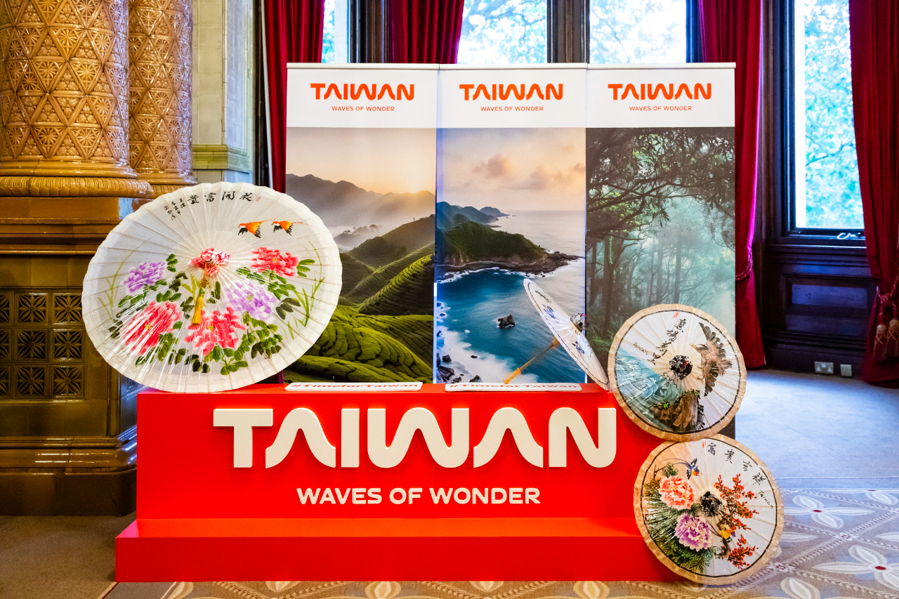 今年國慶酒會現場播放2024雙十國慶影片及本處製作的台英關係成果影片,並以台灣觀光新品牌「TAIWAN– Waves of Wonder」(台灣魅力‧驚喜無限)為主題,設置台灣觀光展覽區域,另提供文化、教育等各式文宣品供賓客索取,會場也設有攤位提供台灣美食,讓賓客體驗台灣的美麗的風情與美好的風味。