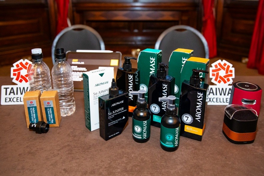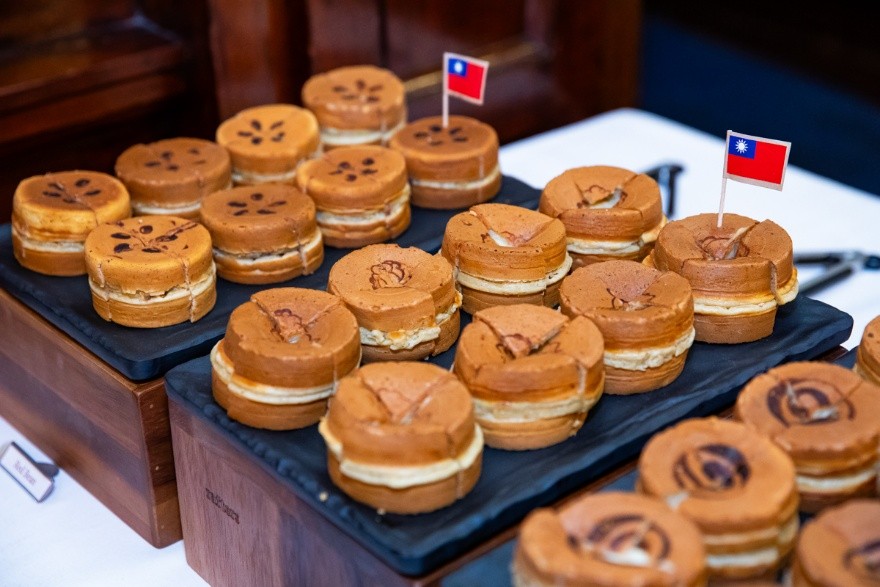 今年國慶酒會現場播放2025雙十國慶影片及本處製作的台英關係成果影片,現場並設有台灣精品展攤位,由台貿中心解說我廠商獲精品獎的各類商品,另提供觀光、教育等各式文宣品供賓客索取,會場也設有攤位提供台灣美食,讓賓客體驗台灣道地傳統小吃如紅豆餅、珍珠奶茶及台灣噶瑪蘭威士忌等令人垂涎的風味美食。