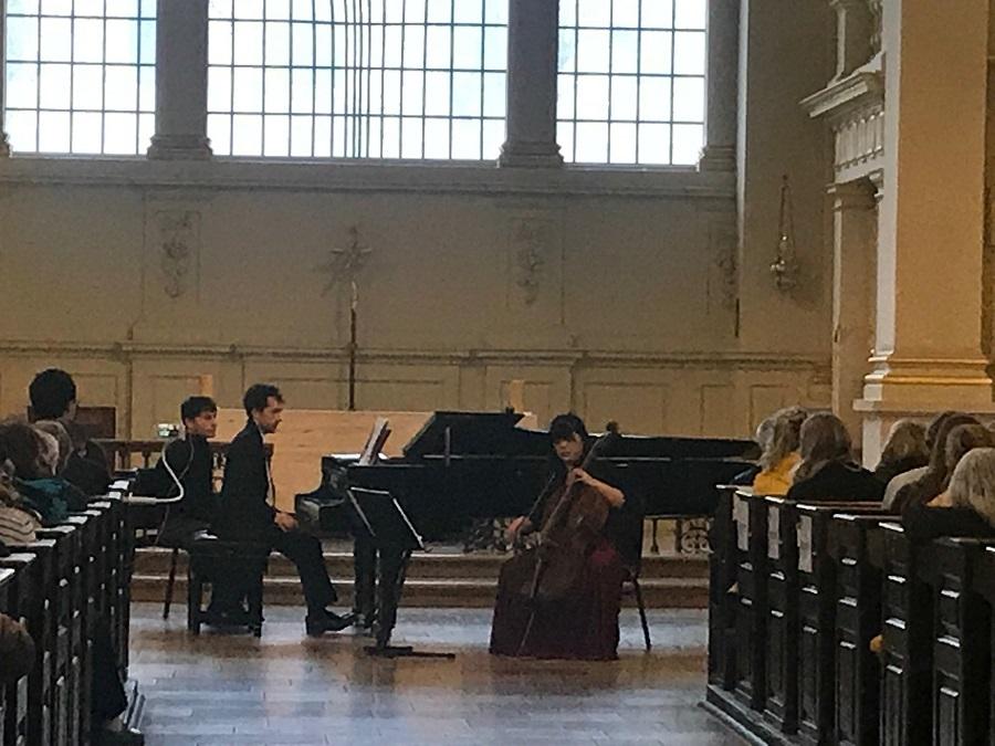 駐英國台北代表處於3月12日午間時間受邀參加旅英大提琴家林冠吟與義大利鋼琴家Andrea Emanuela在倫敦聖馬丁教堂舉辦之午間音樂會,主流各界約400人在典雅的教堂裡搭配著悠揚的樂章,室內的溫馨與窗外風雨形成強烈對比,呈現出一種時而恬靜、時而高亢的英式浪漫,聽眾無不陶醉其中,佳評如潮。音樂會內容跨越19以及20世紀,曲目包含著名的貝多芬A大調第三號大提琴奏鳴曲以及20世紀巴伯大提琴奏鳴曲。駐英國代表處林永樂大使、徐郁喬副參事、張希賢僑務秘書、文化組巫維芬秘書及陳譓如秘書等人亦受邀出席。