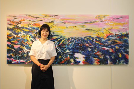 王淑鈴與作品合照(翻攝自非池中藝術網官網,圖片由采泥藝術提供) A photograph of Suling Wang with her artwork. (Image courtesy of Art Emperor website, provided by CHINI Gallery)