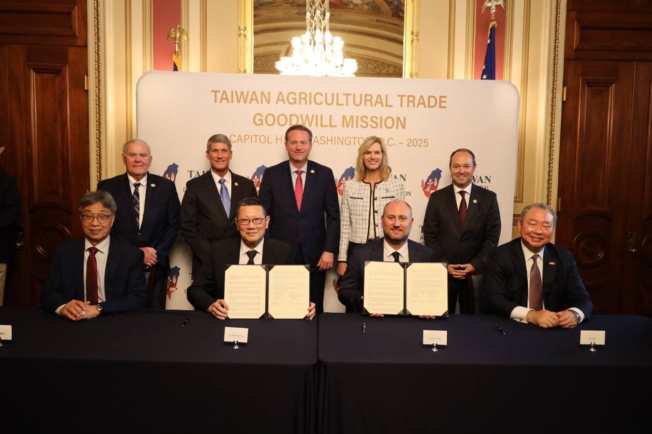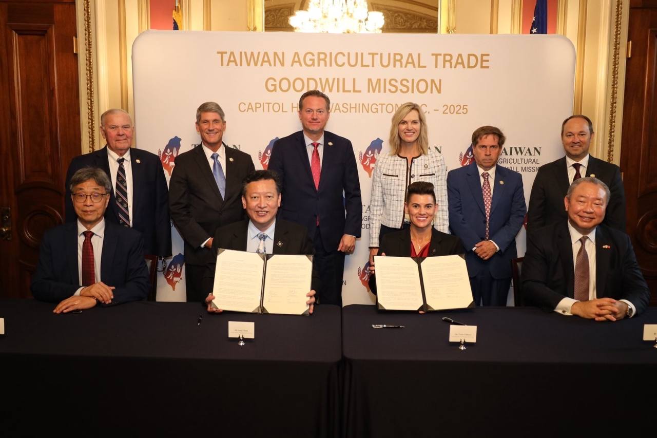 「2025年中華民國(台灣)農產品貿易赴美友好訪問團」(農訪團)於9月17日在國會山莊舉行採購意向書簽署儀式暨酒會,農業部長陳駿季、駐美代表俞大使大㵢及16位美國聯邦參、眾議員共同見證,我農訪團與美國穀物業者簽署三份採購意向書,規劃於2026年至2029年採購總價超過100億美元之美國黃豆、玉米、小麥及牛肉。