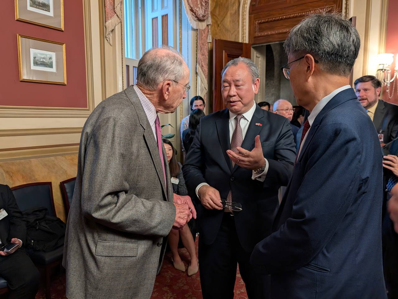 駐美代表俞大使致詞表示,台美貿易關係互利互惠,美國進口台灣生產之晶片等高科技產品,我則採購美國農產品、能源與國防相關物資。我國定期籌組農訪團赴美國,展現台灣對持續提升台美夥伴關係的決心。另感謝出席議員對我的堅定支持,台美關係極為重要,美國農產品亦有助提升我糧食安全,相信在政府與民間的共同努力下,台美情誼將持續強化。
