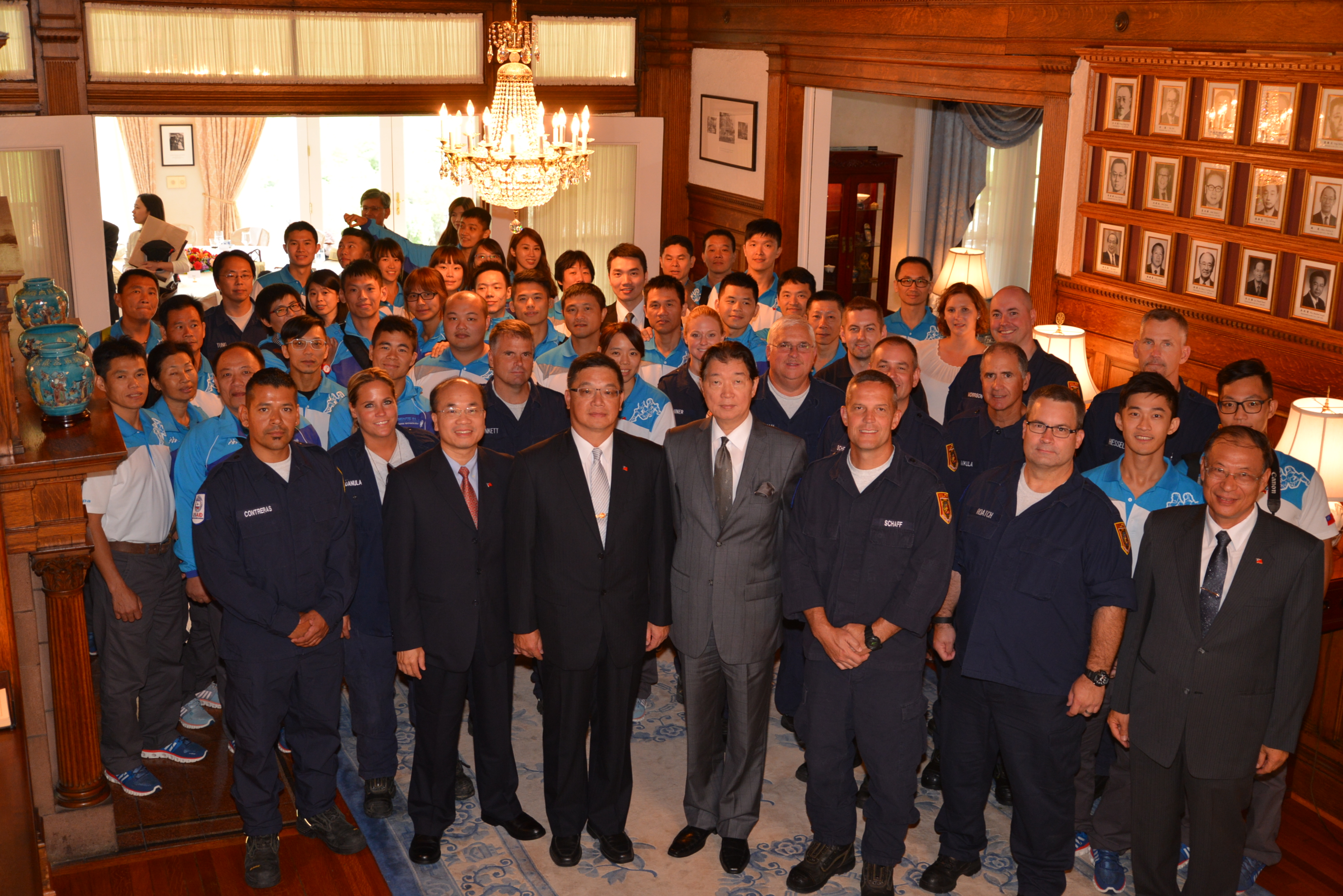 沈大使與我國參加「2015世界警消運動會」團員及費郡搜救隊成員合影