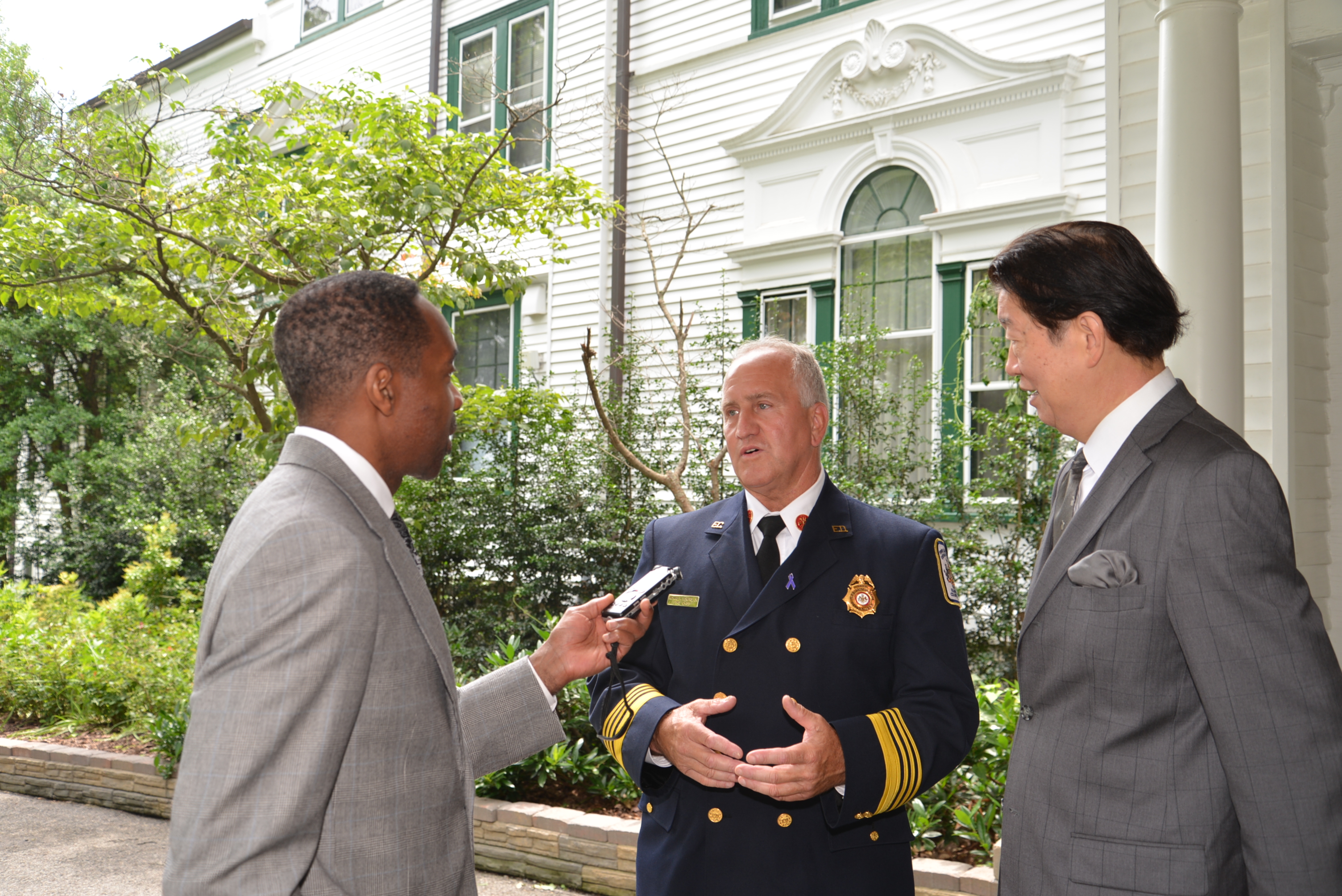 - 華府專業新聞廣播電臺記者專訪費郡消防局局長鮑爾斯及沈大使。