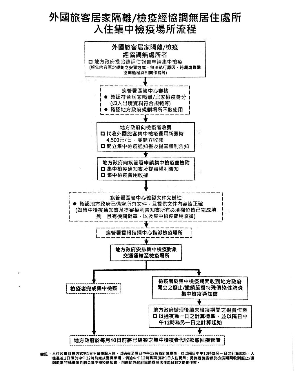 外國旅客居家隔離/檢疫經協調無居住處所入住集中檢疫場所流程 - 駐美國台北經濟文化代表處 Taipei Economic and Cultural Representative Office in the United States ::: 跳到主要內容區塊