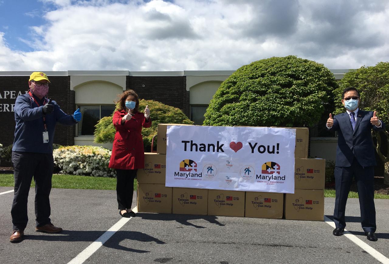 駐美國代表處於本(2020)511日捐贈10萬片醫療用口罩給馬里蘭州,協助支援在第一線對抗新型冠狀病毒(COVID-19)的醫護人員所需的防護裝備。馬州州務卿辦公室國際關係主任倪琪(Mary Nitsch)及馬州疫情緊急管理中心經理蘇倫森(William Sorenson)共同代表馬州政府接受並感謝台灣慷慨義舉。