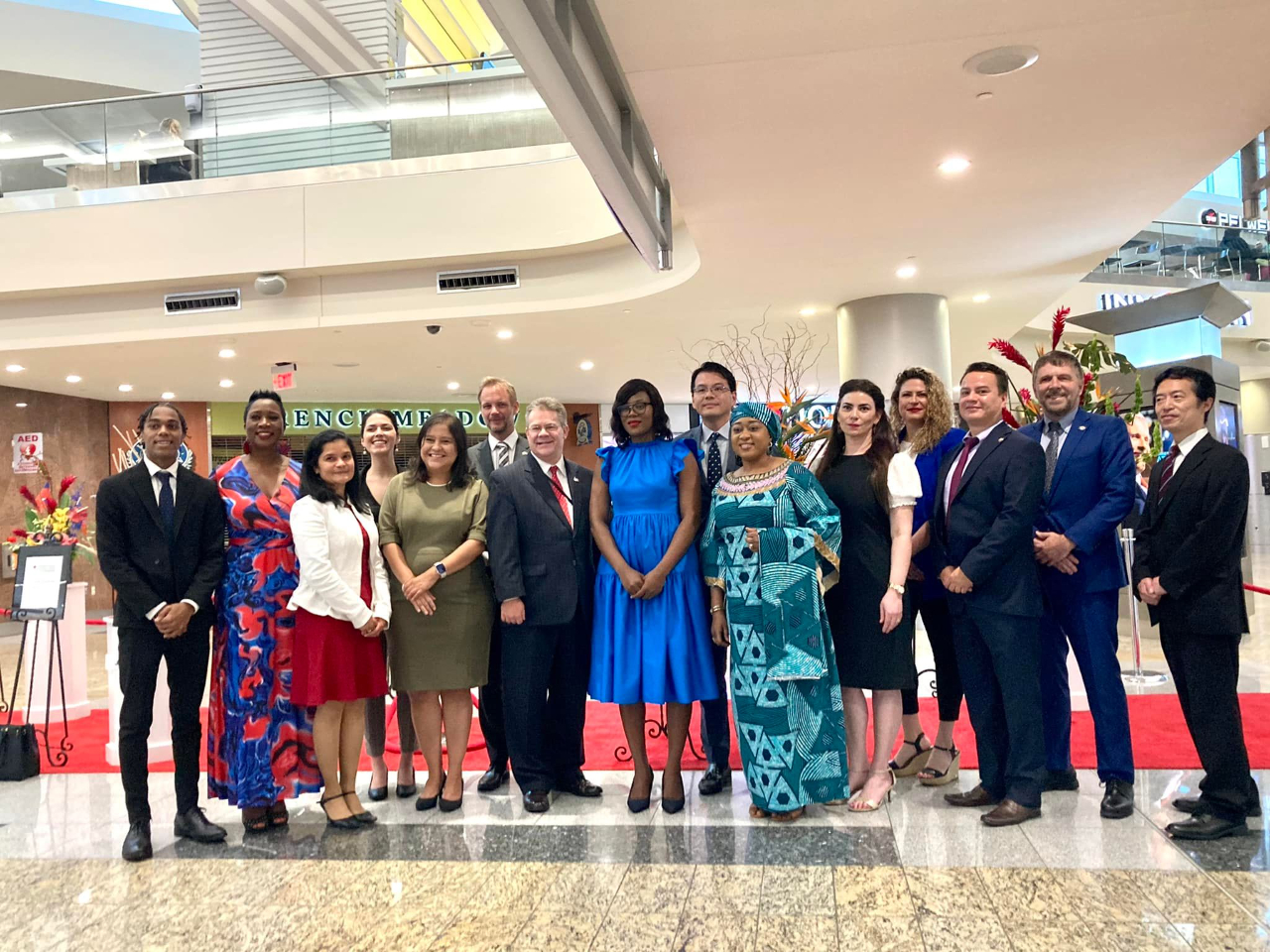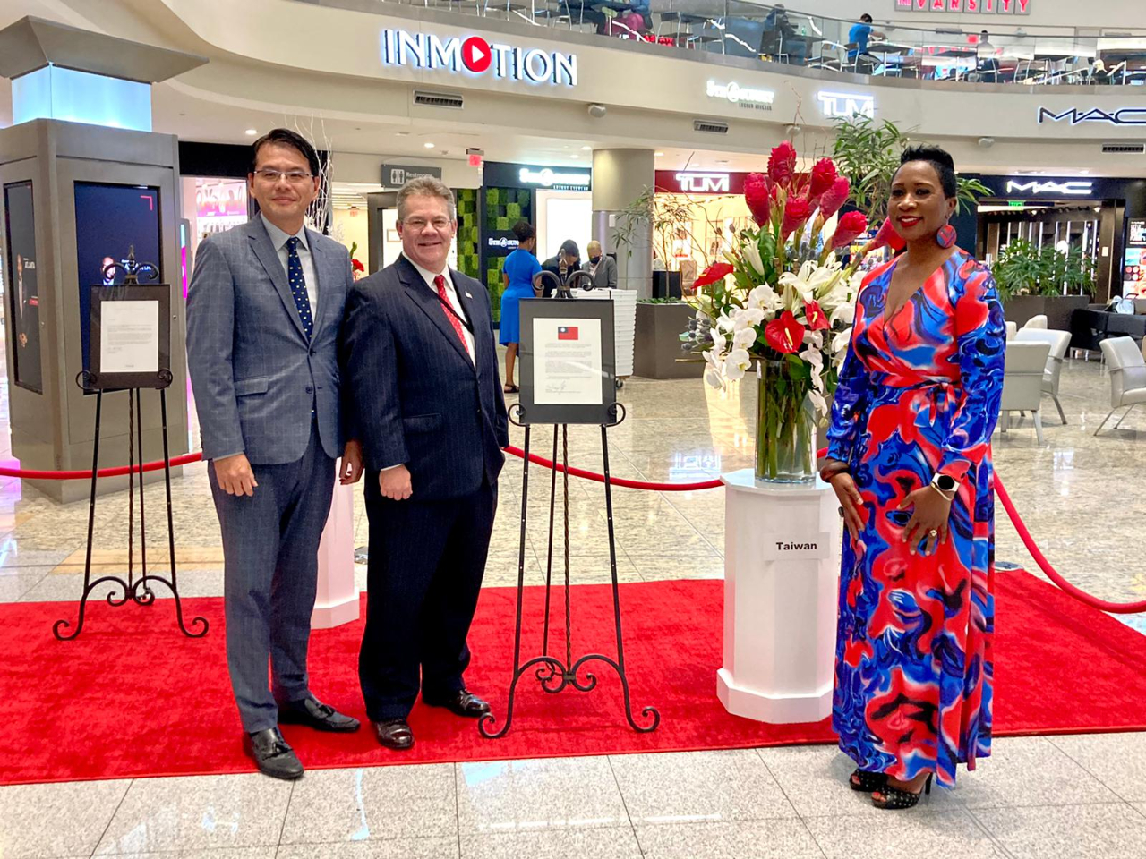 王處長出席亞特蘭大國際機場慶祝美國第246週年獨立紀念日「生命、自由及追尋飛行」活動,各國領事團祝賀美國246週年獨立紀年日,特別在國際航廈大廳布置花卉藝術,本處特別以紅藍白三色象徵臺美國旗,並以蘭花展現臺灣特色,用花卉外交祝賀美國獨立紀念日!!