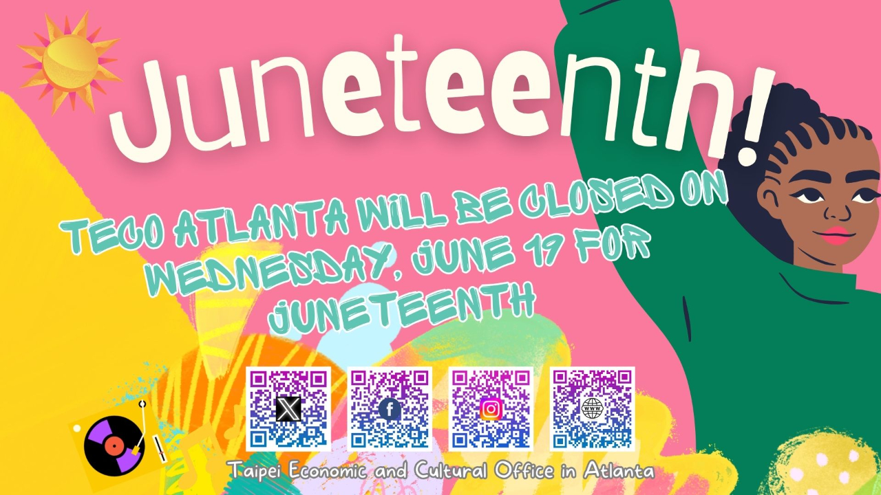 駐亞特蘭大台北經濟文化辦事處配合美國六月節國定假日,將於2024年6月19日(星期三)暫停對外服務乙日。倘於前述假日遇有重大急難事件需緊急協助,請撥打本處緊急聯絡電話: 404-358-3875。