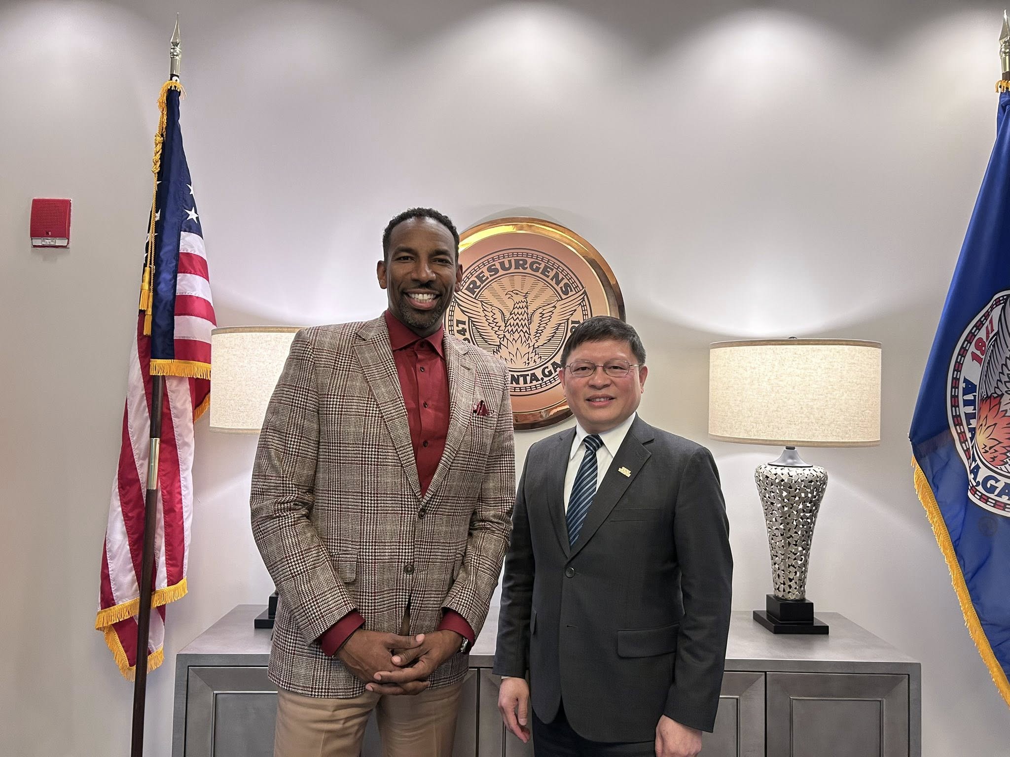 本處林主恩處長拜會亞特蘭大市市長Andre Dickens,就深化台灣與美國第六大都市亞特蘭大的合作前景進行討論。