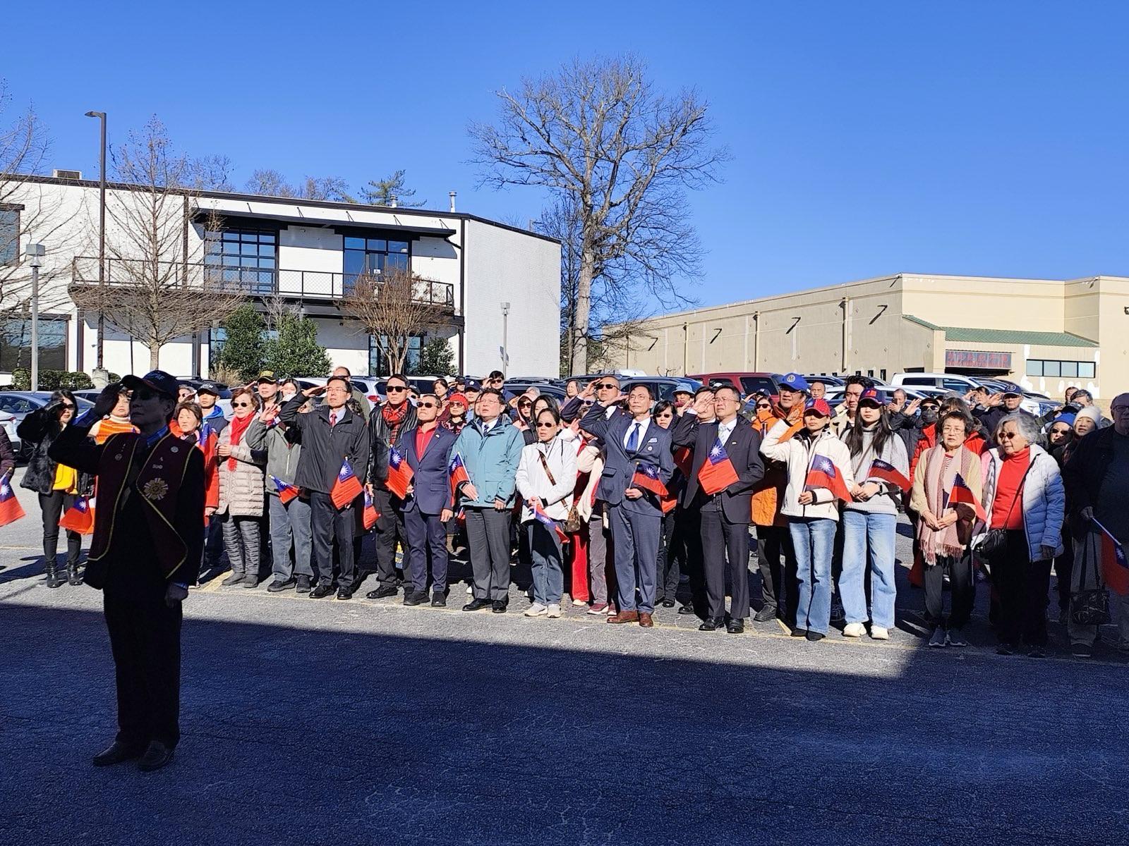 亞特蘭大榮光聯誼會1月1日在亞特蘭大文教中心隆重舉行全僑慶祝中華民國115年元旦升旗典禮。駐亞特蘭大辦事處處長林主恩率全體同仁,文教中心主任閻樹榮、僑務委員陸復泰、張崧軒、僑務榮譽職以及各僑團代表與僑胞約250餘人齊聚一堂,共同慶祝國家生日。上午11時,典禮在隆重的氣氛中展開,由榮光會理事長張世杰帶領海外青年文化大使(FASCA)、榮光會會員、眷屬及僑胞共同高唱美國與中華民國國歌。隨著國旗歌奏起,青天白日滿地紅國旗冉冉升起,全場肅立注目,氣氛莊嚴而感人。隨後,在亞特蘭大眷村聯誼會會長葉竣圖帶領下,全體齊聲高呼「中華民國自由民主萬歲」,展現僑界堅定的愛國信念與團結精神。