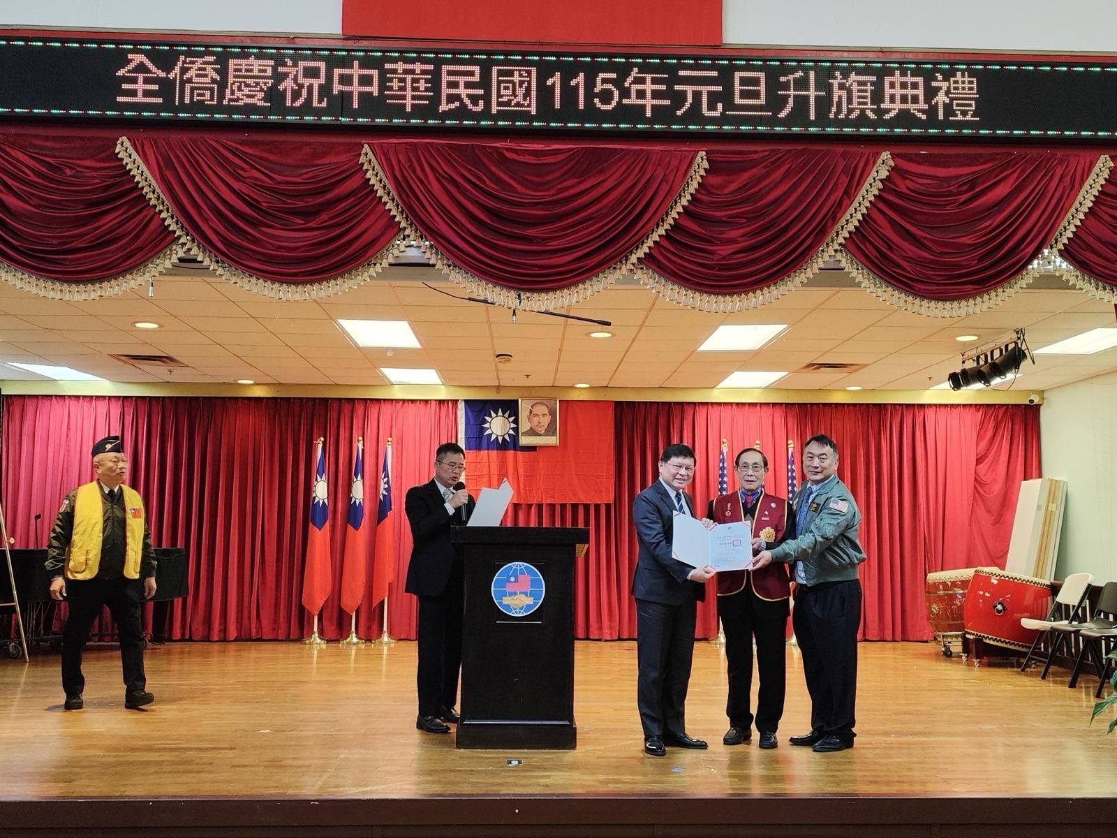慶祝典禮活動中也安排頒發僑委會感謝僑團辦理114年雙十國慶活動感謝狀及114年FASCA志工服務證書,在現場溫馨的氣氛中劃下圓滿的句點,所有僑胞再次向中華民國慶賀元旦。
