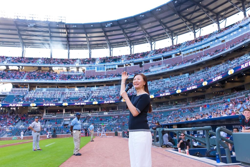Ambassador Kao was once the Taiwanese Consul General in Atlanta, and he and his wife attended many Braves games. After His Excellency's pitch and the US National Anthem, Madame Kao called, “Play ball.”