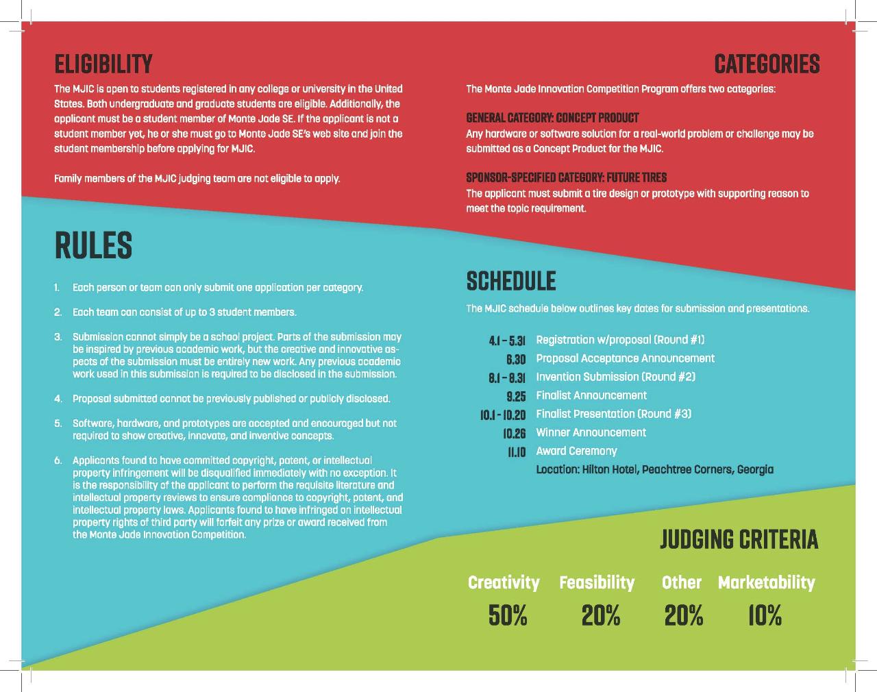 In order to encourage young talents to think outside the box, pursue creative avenue, and present ideas, the MJIC initiates the Innovation Competition Program which is open to students registered in colleges or universities in the U.S. The program is a new chapter of the MJIC’s 24-year Monte Jade Young Achiever Award. In addition to a scholarship, winners of the competition will receive tailored prize packages, including preparation for career planning and entrepreneurship. For further information, please go to Montejadese.org/#mjic