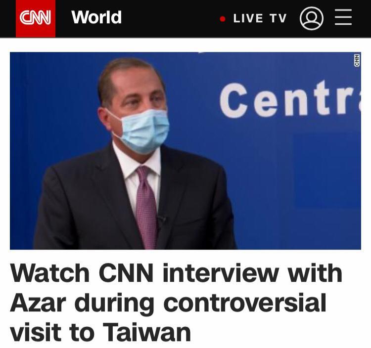 See CNN interview US Health and Human Services Secretary Alex Azar about his visit to Taiwan. He insisted on taking the trip to learn from Taiwan about its extraordinary pandemic response and to demonstrate the US’s support for Taiwan’s international participation, specifically in matters of global health. See the interview here.