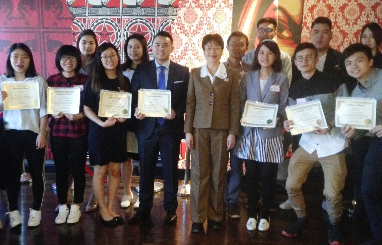 在歡喜盼望的氛圍下,鄭舜允同學得到全體同學默契和友情支持,全數通過,成為新一任的領導人。前會長黃勛說,他擔任同學會副會長、會長多年,很感謝有機會跟這麼多好朋友一起共事,他鼓勵會長們踴躍出列,擔任學聯幹部,當然也提醒大家學業和學聯並重,不要忘了讀書。陳組長也在一片交棒聲中,謝謝學聯對我留學生的服務和聯繫,並頒感謝狀給前任會長、副會長及幹部14人,讚許他們為同學們服務的熱情。