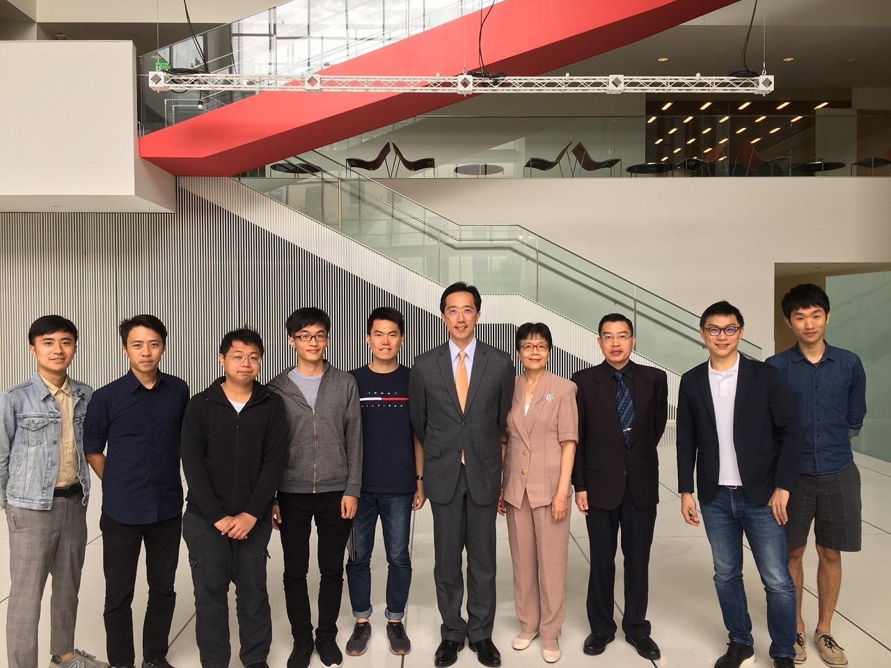 徐總領事並與在該實驗室從事無人車研究的臺籍交換學生舉行座談,瞭解臺美在該領域合作的最新發展與運用。徐總領事同時勉勵在座同學在鑽研科技新知之時,仍應時時記取回饋臺灣社會,回國貢獻所學。