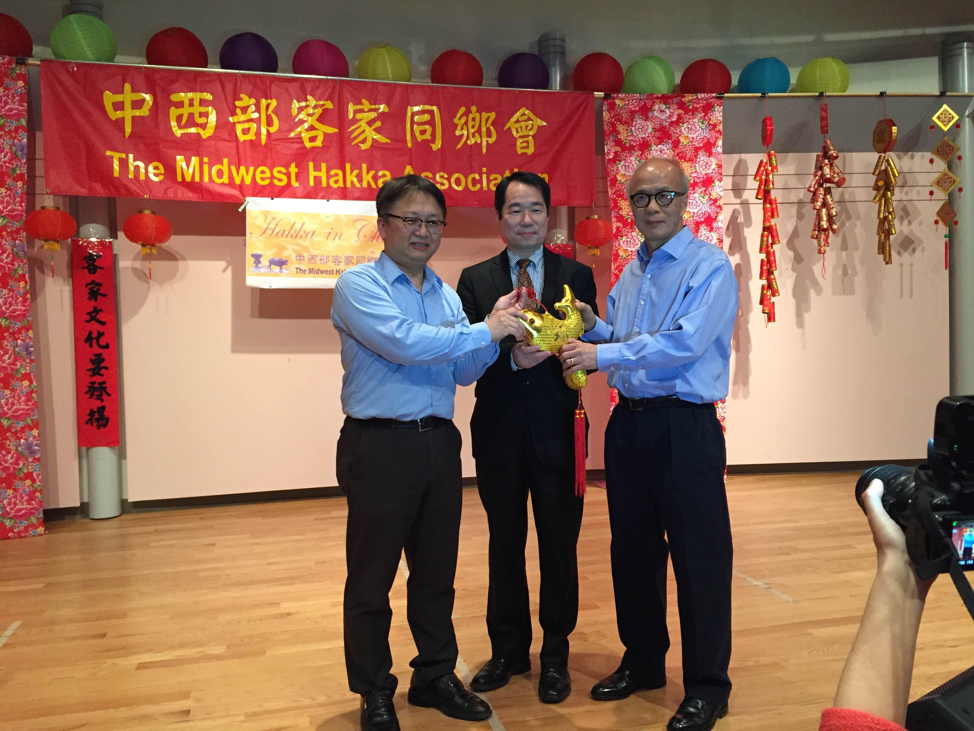 中西部客家同鄉會新舊任會長移交,何處長震寰監交(由左至右:卸任會長邱垂洸、何處長震寰、新任會長余成貴)